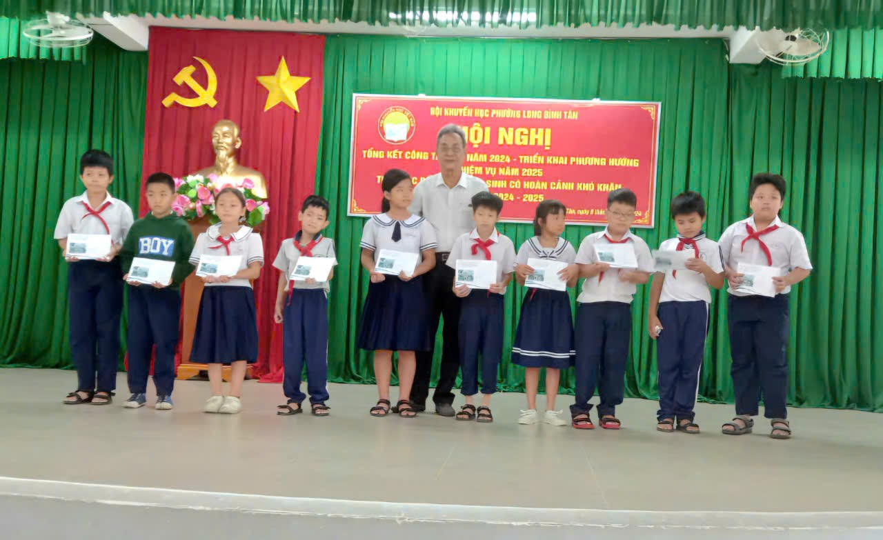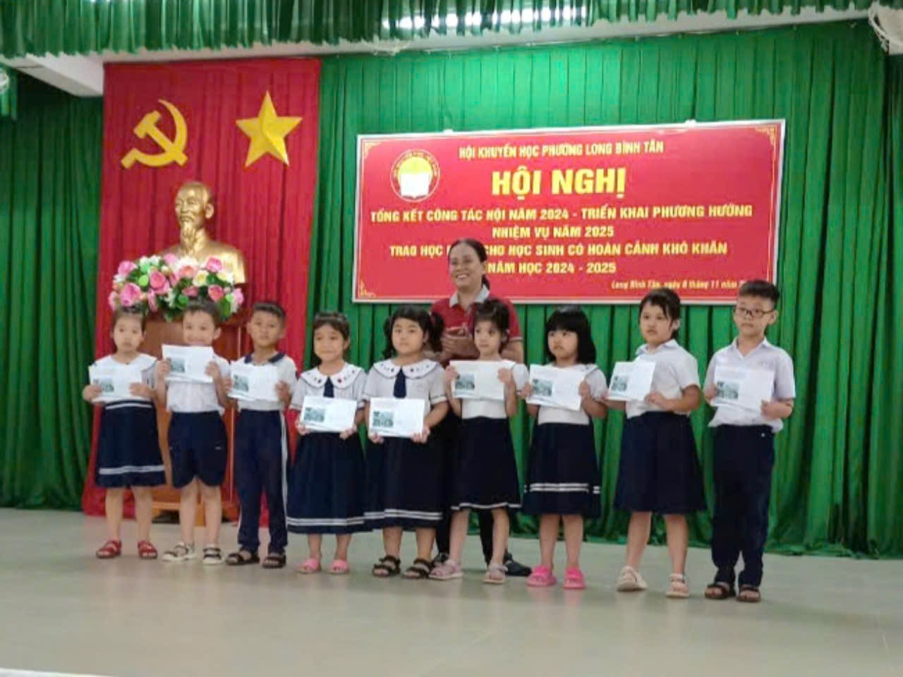 Tại hội nghị, UBND phường đã trao học bổng cho 50 học sinh có hoàn cảnh đặc biệt khó khăn năm học 2024 – 2025 với tổng số tiền là 25.000.000 đồng. Khen thưởng 8 học sinh đạt giải trong kỳ thi học sinh giỏi cấp Tỉnh năm học 2023-2024 số tiền 2.000.000 đồng.