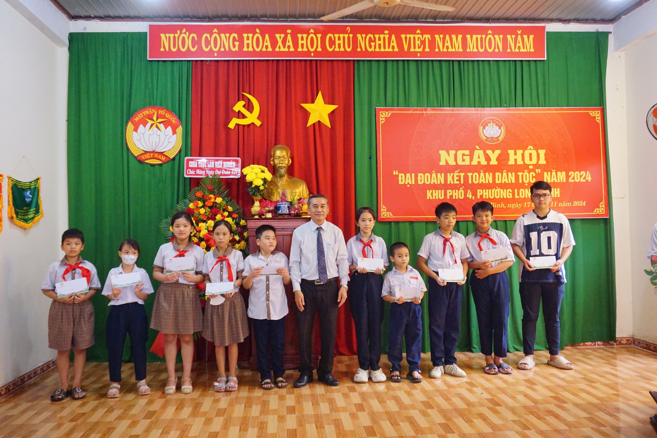 Đồng chí Nho Văn Lịch - Thành ủy viên, Phó Chủ tịch UBMTTQVN thành phố Biên Hòa trao tặng học bổng cho các em học sinh nghèo hiếu học