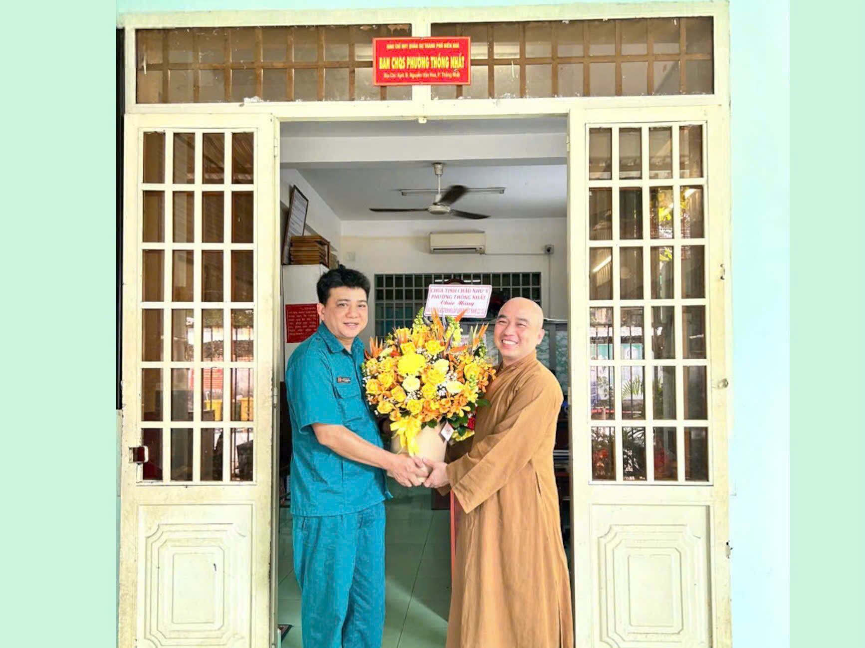 Thay mặt lãnh đạo phường, đồng chí Trương Minh Trung - Bí thư Đảng uỷ, chủ tịch HĐND phường và đồng chí Đỗ Thị Thùy Trang – Phó Bí thư Đảng ủy, chủ tịch UBND phường cùng với Đại đức Thích Quý Trì – Trụ trì Chùa Tịnh Châu Như Ý đã gửi lời chúc mừng đến tập thể cán bộ, chiến sĩ lực lượng Ban chỉ huy Quân sự phường nhân ngày thành lập Quân đội nhân dân Việt Nam; đồng thời ghi nhận, biểu dương những đóng góp tích cực của cán bộ, chiến sĩ đơn vị đã không quản khó khăn, vất vả giúp đỡ địa phương trong thời gian qua, làm tốt công tác tham mưu và tổ chức tốt diễn tập chiến đấu phòng thủ năm 2024. Giữ nghiêm kỷ luật trong quan hệ với nhân dân, nhất là quan hệ đối với đồng bào có tôn giáo; giữ gìn truyền thống “Trung với Đảng, hiếu với dân” và hình ảnh “Bộ đội Cụ Hồ”, không ngừng bồi đắp tình cảm yêu mến, trân trọng của người dân trên địa bàn phường nói chung, của đồng bào có tôn giáo nói riêng đối với Quân đội. Phát huy bản chất, truyền thống "Bộ đội cụ Hồ", thời gian tới, đồng chí Bí thư Đảng ủy mong muốn Ban Chấp hành quân sự phường tiếp tục quán triển và thực hiện tốt các chỉ lệnh của cấp trên, đoàn kết thống nhất, tập trung lãnh đạo, chỉ đạo hoàn thành tốt các mục tiêu nhiệm vụ quân sự - quốc phòng địa phương, đáp ứng yêu cầu trong tình hình mới, xứng đáng với niềm tin của Đảng bộ và nhân dân phường Thống Nhất.
