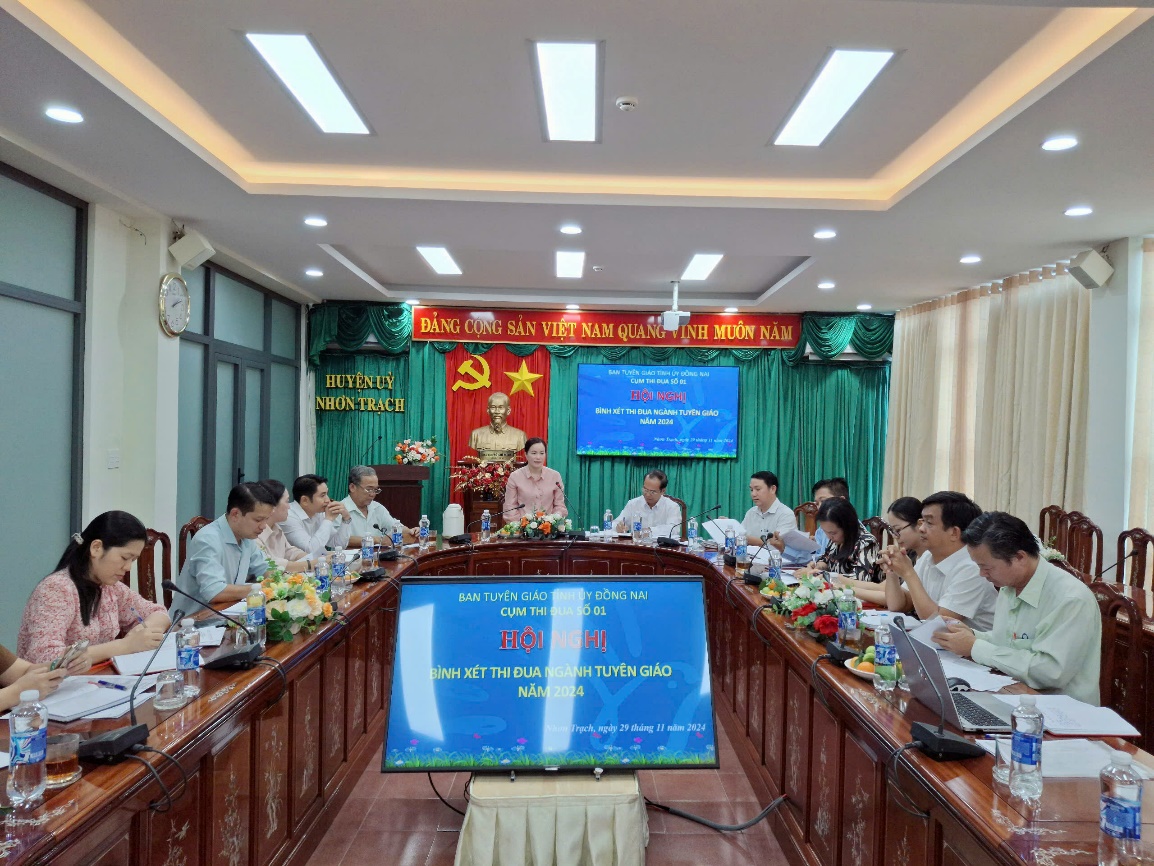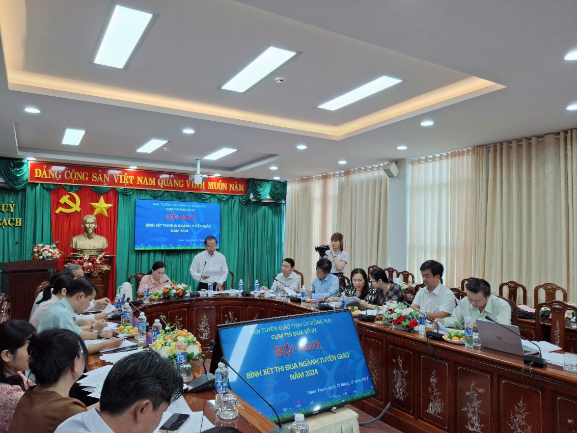 Tại Hội nghị, Cụm thi đua số 1 tổ chức bình xét để Ban Tuyên giáo Tỉnh ủy khen thưởng đối với tập thể và cá nhân, kết quả như sau: Về tập thể xuất sắc nhiệm vụ (Ban Tuyên giáo Huyện ủy Long Thành, Ban Tuyên giáo Huyện ủy Trảng Bom, Trung tâm Chính trị Thành ủy Biên Hòa, Trung tâm Chính trị Huyện ủy Nhơn Trạch); về cá nhân xuất sắc tương ứng với tập thể xuất sắc.