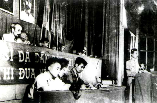 Chủ tịch Hồ Chí Minh tại Đại hội anh hùng chiến sĩ thi đua toàn quốc lần thứ nhất tại Thái Nguyên tháng 5/1952 (Ảnh tư liệu)