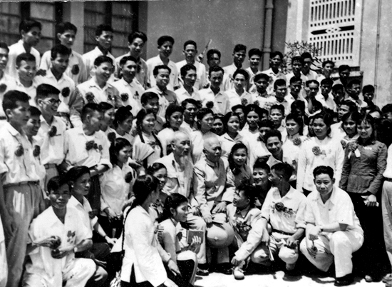 Chủ tịch Hồ Chí Minh và Phó Chủ tịch Tôn Đức Thắng chụp ảnh lưu niệm với các anh hùng chiến sĩ thi đua tại Đại hội anh hùng chiến sĩ thi đua lần thứ 3 tháng 5 năm 1962 (Ảnh tư liệu)