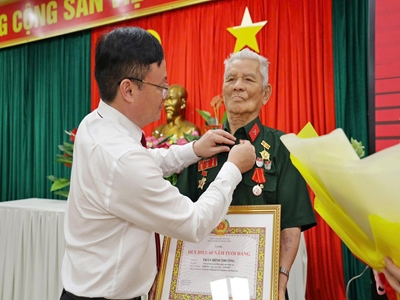Đảng ủy xã Trảng Bom, tổ chức trao tặng Huy hiệu Đảng trước hạn  cho 2 đồng chí có Huy hiệu 65 năm, 60 năm và truy tặng Huy hiệu Đảng 60 năm cho 01 đồng chí