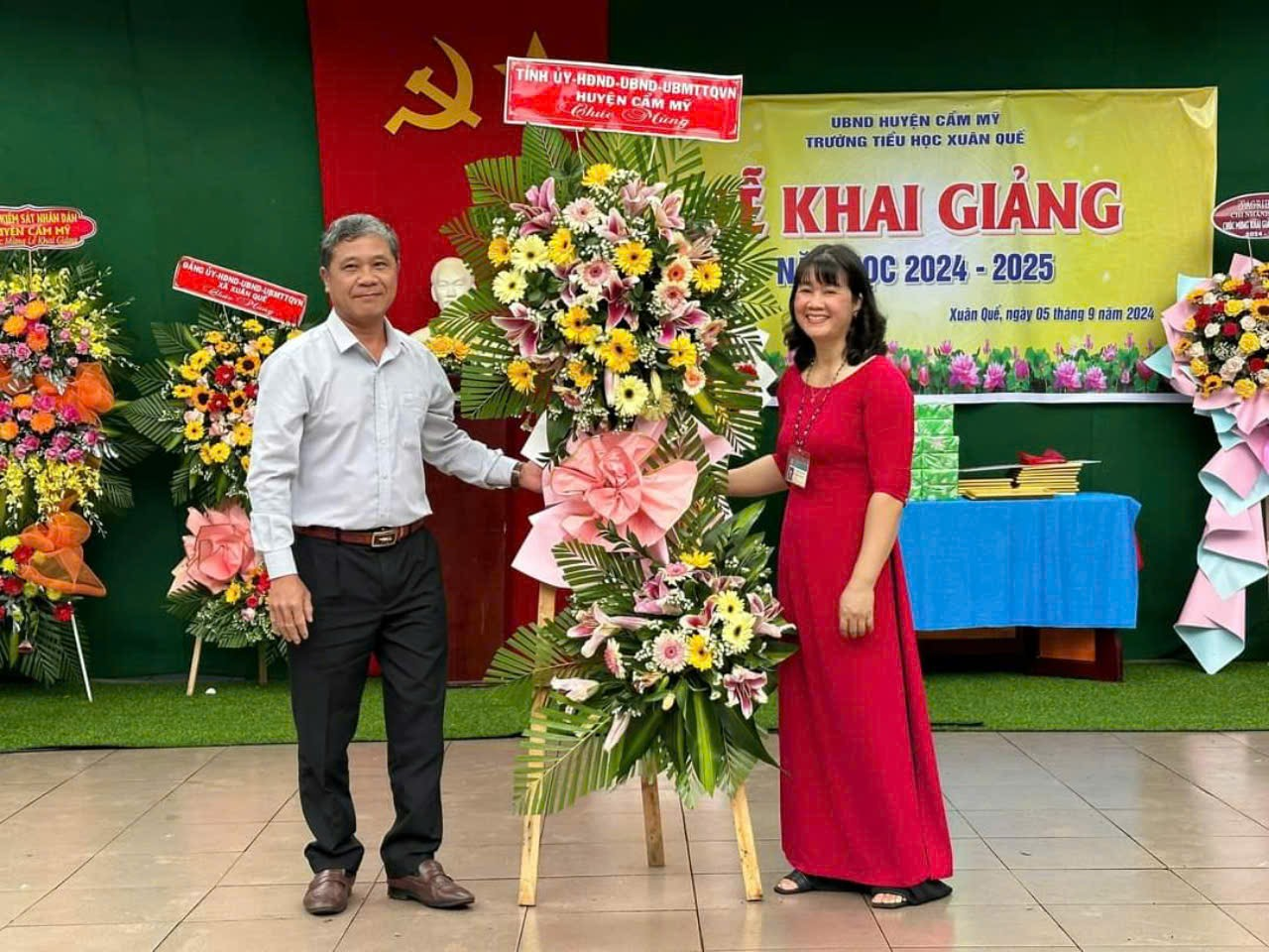 Đồng chí Lưu Văn Sửu- UVTV- Chủ tịch HĐND huyện dự khai giảng tại trường Tiểu học Xuân Quế