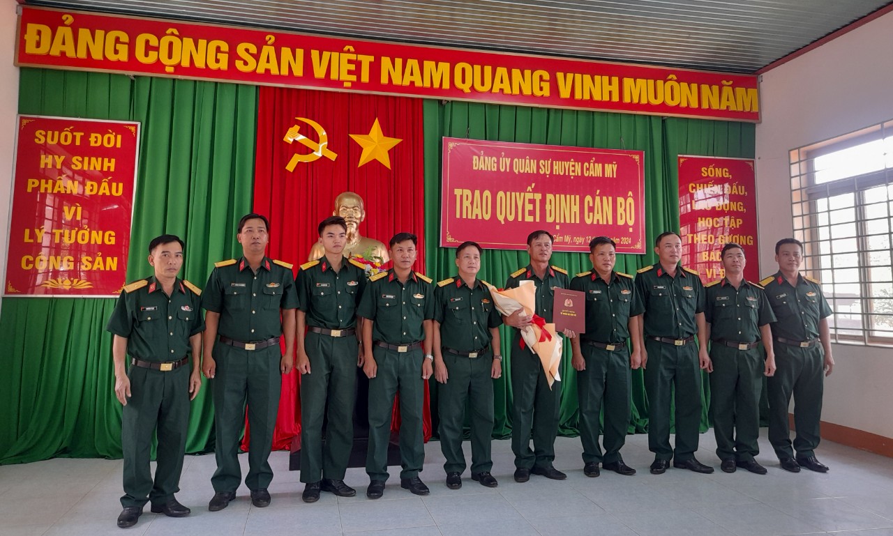 Chiều ngày 12.4.2024, Đảng ủy Ban chỉ huy Quân sự huyện Cẩm Mỹ tổ chức lễ trao quyết định thăng quân hàm sĩ quan của Bộ Quốc phòng từ cấp bậc trung tá lên thượng tá đối với đồng chí Trần Văn Giang, nguyên là phó chỉ huy trưởng Ban chỉ huy Quân sự huyện Cẩm Mỹ thuộc quân khu 7.