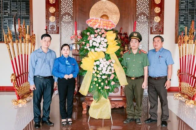 Đoàn Đại biểu hội LHTN Việt Nam huyện, lãnh đạo UBND xã Xuân Bảo đặt tràng hoa tại Đền thờ liệt sỹ