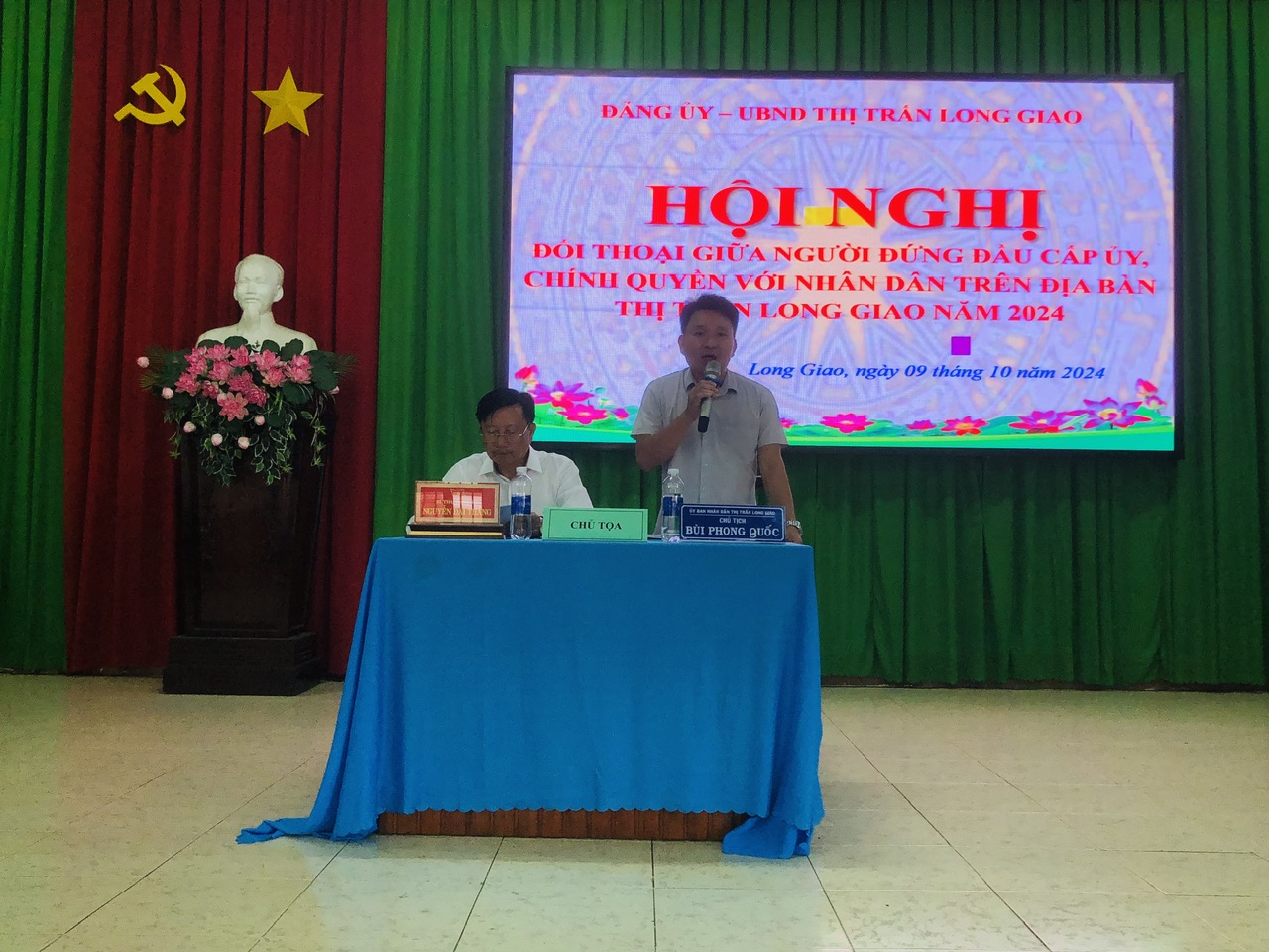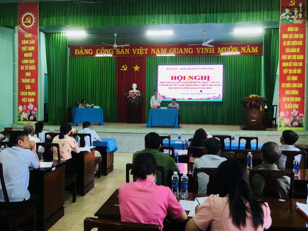 Chiều ngày 09/10/2024 tại hội trường UBND thị trấn, Đảng ủy thị trấn Long Giao tổ chức Hội nghị đối thoại giữa người đứng đầu cấp ủy, chính quyền với Nhân dân thị trấn Long Giao