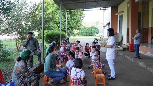 Cô Lương Thị Bình, Phó hiệu trưởng trường TH Nguyễn Du, huyện Cẩm Mỹ, Đồng Nai cho biết, sau khi tổng hợp danh sách gửi trạm y tế rà soát tổng hợp danh sách các em trong diện tiêm phòng. Nhà trường đã gửi thông báo chích ngừa hoặc không chích ngừa về phụ huynh. Đa số phụ huynh đều chấp hành chích ngừa để nâng cao khả năng phòng bệnh sởi cho các cháu.