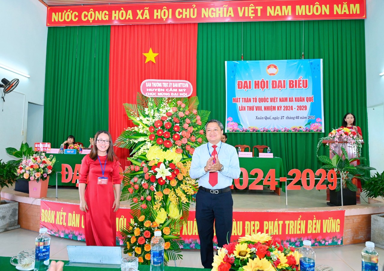Lãnh đạo UBMTTQ VN huyện tặng hoa chúc mừng thành công Đại hội Mặt trận Tổ quốc Việt Nam xã Xuân Quế.