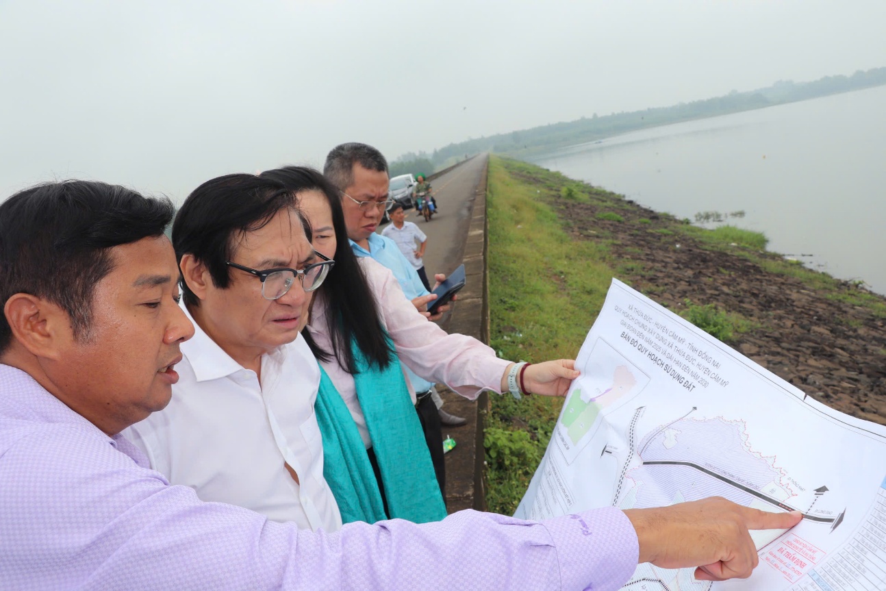 Trước khi bước vào buổi làm việc, Đoàn đã đi khảo sát thực tế tại điểm quy hoạch Khu du lịch sinh thái nghỉ dưỡng kết hợp Hồ Cầu Mới tuyến 5, tuyến 6 tại xã Thừa Đức với quy mô 500 ha. Dự kiến đầu quý IV/2025 sẽ hoàn thành. Nơi đây có cảnh quan đẹp, vừa cung cấp nguồn nước dồi dào cho các hoạt động phát triển sản xuất nông nghiệp, vừa có điều kiện cảnh quan thiên nhiên, sinh thái thuận lợi cho phát triển dịch vụ du lịch. Khu vực này cách cửa ngõ sân bay khoảng 4 km, có địa hình phù hợp với du lịch sinh thái, có hệ thống giao thông thuận lợi.