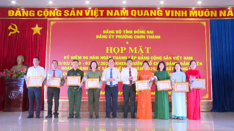 Dịp này Đảng ủy phường Chơn Thành cũng đã tặng giấy khen cho 9 Chi, Đảng bộ trực thuộc đạt tiêu chuẩn “Hoàn thành xuất sắc nhiệm vụ tiêu biểu” năm 2025. Tặng giấy khen cho: 02 đảng viên, có thành tích hoàn thành xuất sắc nhiệm vụ 5 năm liền (2020-2025) và 50 đảng viên hoàn thành xuất sắc nhiệm vụ năm 2025.