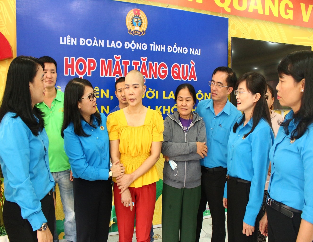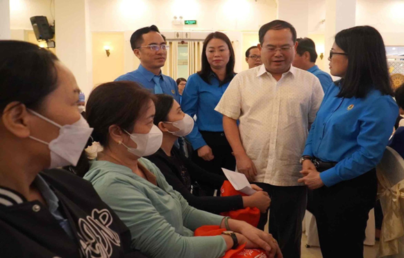 Lãnh đạo Liên đoàn lao động tỉnh tặng quà cho công nhân