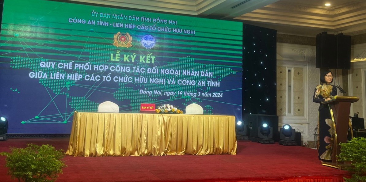 Công tác ĐNND là nhiệm vụ của cả hệ thống chính trị, của từng cán bộ, đảng viên và người dân. Nâng cao hiệu quả công tác ĐNND là góp phần củng cố khối đại đoàn kết toàn dân tộc, phục vụ thiết thực sự nghiệp xây dựng và bảo vệ Tổ quốc trong tình hình mới. Chiều ngày 19/3/2024, Công an tỉnh và Liên hiệp các tổ chức hữu nghị tỉnh Đồng Nai tổ chức lễ ký kết Quy chế phối hợp công tác ĐNND. Tham dự hội nghị có các đồng chí: Huỳnh Thanh Bình - UVTV, Chủ nhiệm Ủy ban kiểm tra Tỉnh ủy; Trần Trung Nhân - UVTV, Trưởng Ban Nội chính Tỉnh ủy; Hoàng Thị Bích Hằng - TUV, Phó Chủ tịch HĐND tỉnh; Nguyễn Thị Hoàng - TUV, Phó Chủ tịch UBND tỉnh và các đồng chí là lãnh đạo các sở, ban, ngành tỉnh, trưởng, phó Công an của các huyện, thành phố Biên Hòa, thành phố Long Khánh, các phòng ban trực thuộc Công an tỉnh và các Hội hữu nghị.