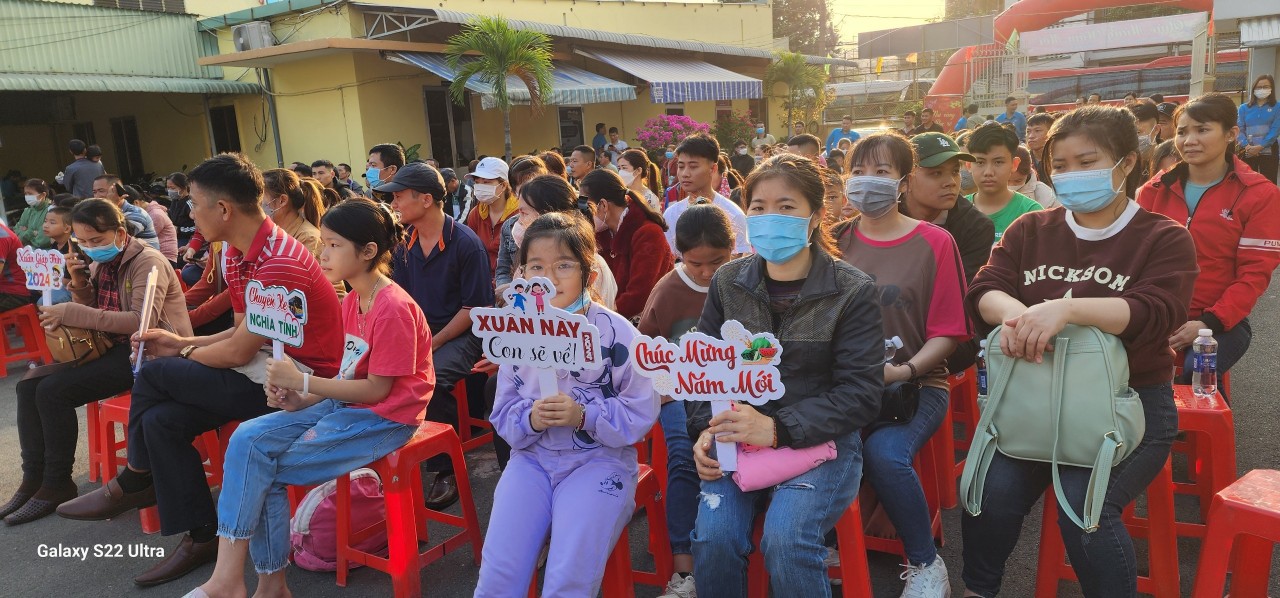 Đoàn viên Công đoàn, NLĐ và người thân đến dự lễ và tham gia chuyến xe “Tấm vé nghĩa tình - Tết đoàn viên” ngày 03/02/2024