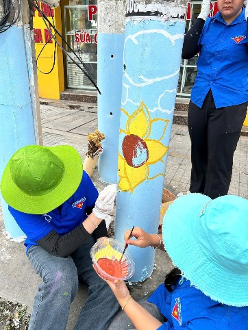 Để có những “Cột điện nở hoa” là cả một quá trình dày công của các họa sĩ không chuyên với hơn 60 bạn đoàn viên, thanh niên tham gia thực hiện. Trước khi tiến hành trang trí, các bạn trẻ đã tiến hành bóc gỡ, cạo xóa toàn bộ các tờ quảng cáo rác, rao vặt dán trên các cột điện, sau đó, tiến hành quét sơn lót và miệt mài, tỉ mỉ vẽ những bông hoa, chiếc lá đủ sắc màu. Kết quả, sau 02 ngày, các bạn đoàn viên, thanh niên đã có hơn 80 cây cột điện chính thức “nở hoa” với nhiều màu sắc vô cùng sống động và bắt mắt.