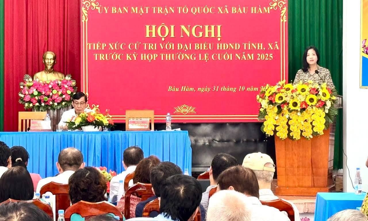 Ngày 31-10, tại Hội trường UBND xã Bàu Hàm, Tổ đại biểu HĐND tỉnh Đồng Nai (tổ số 4) có đồng chí Huỳnh Ngọc Kim Mai – Ủy viên, Trưởng Ban Văn hóa – Xã hội HĐND tỉnh và đồng chí Phùng Văn Thanh – Giám đốc Bệnh viện Y học Cổ truyền tỉnh Đồng Nai, cùng các đại biểu HĐND xã thuộc các tổ số 1, 8, 9 và 12 đã có buổi tiếp xúc với cử tri xã Bàu Hàm.