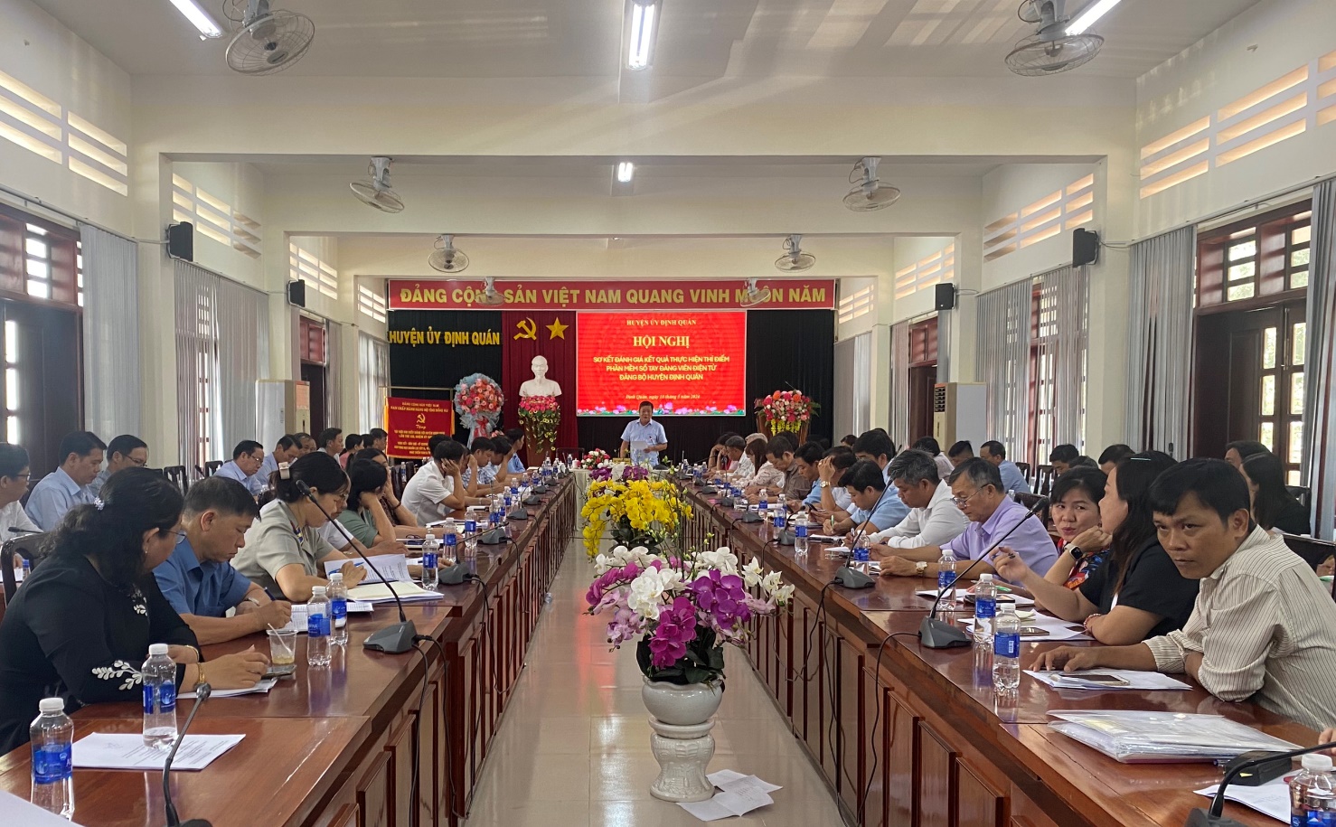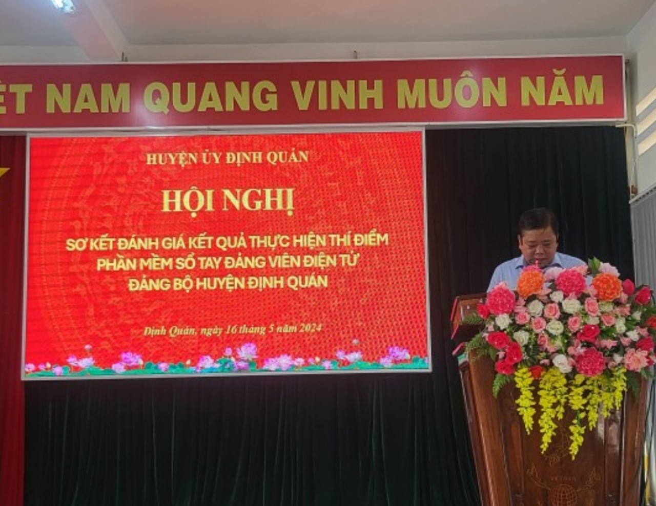 Sáng ngày 16/5/2024, Ban Thường vụ Huyện ủy Định Quán tổ chức Hội nghị sơ kết đánh giá kết quả thực hiện thí điểm phần mềm Sổ tay ĐVĐT tại Đảng bộ huyện Định Quán. Cùng dự hội nghị có các đồng chí đại diện lãnh đạo phòng chuyên môn của Ban Tổ chức Tỉnh ủy, Ủy viên Ban Thường vụ Huyện ủy, Ủy viên Ban Chấp hành Đảng bộ huyện; đại diện lãnh đạo các ban đảng, Văn phòng huyện ủy, các cơ quan, ban, ngành, đoàn thể huyện và các đồng chí là bí thư, phó bí thư các chi, đảng bộ ở cơ sở.