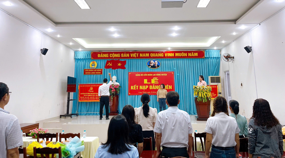 Sau một thời gian dài phấn đấu, chấp hành tốt các chủ trương, đường lối của Đảng, chính sách, pháp luật của Nhà nước, rèn luyện đạo đức lối sống, trau dồi nâng cao trình độ chuyên môn, quần chúng ưu tú Trần Thái Liên và Võ Đình Toàn vinh dự đứng vào hàng ngũ của Đảng. Chiều ngày 10/9/2024, tại Hội trường LĐLĐ huyện, Đảng bộ LĐLĐ huyện Long Thành đã tổ chức lễ kết nạp đảng viên mới cho 02 quần chúng là đoàn viên ưu tú của Công đoàn cơ sở Công ty TNHH OM Digital Solutions Viet Nam (Khu công nghiệp Long Thành).
