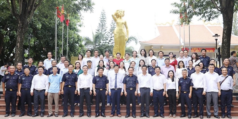 Các đồng chí tham gia Đoàn đến thăm Tượng đài liệt sĩ Võ Thị Sáu tại tỉnh Bà Rịa - Vũng Tàu