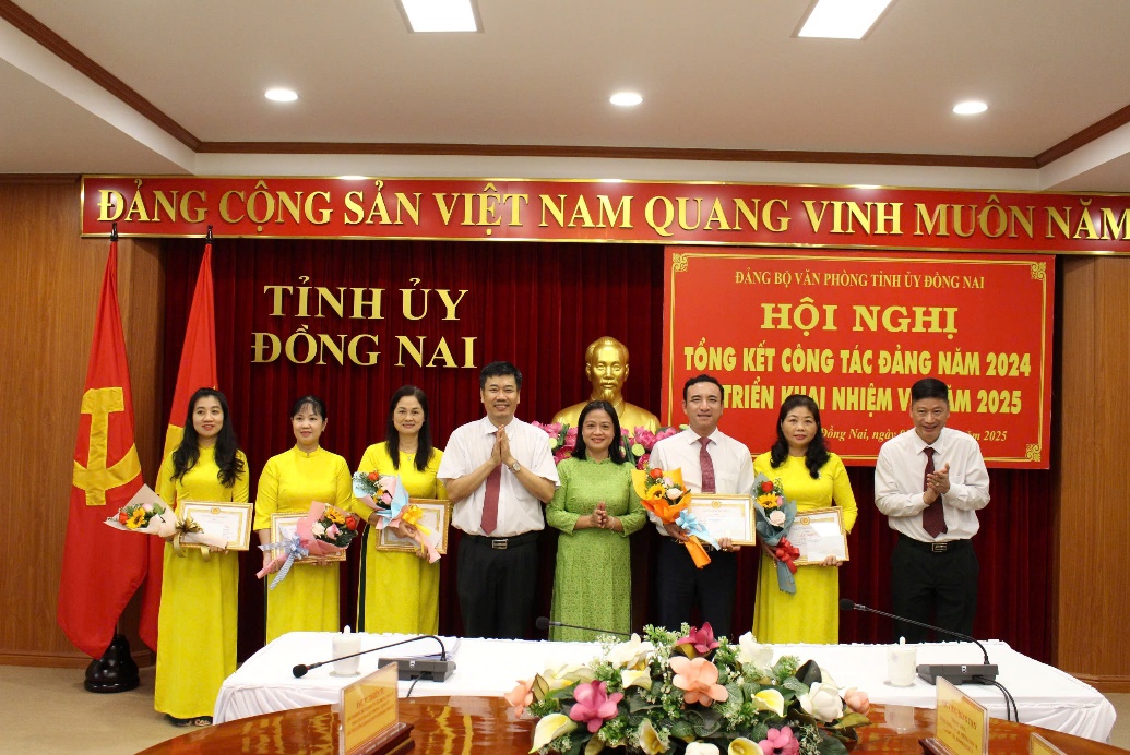 Tại Hội nghị, đồng chí Bí thư Đảng ủy VPTU tặng Giấy khen cho 01 chi bộ (Chi bộ 2) và 11 đảng viên Hoàn thành xuất sắc nhiệm vụ năm 2024.