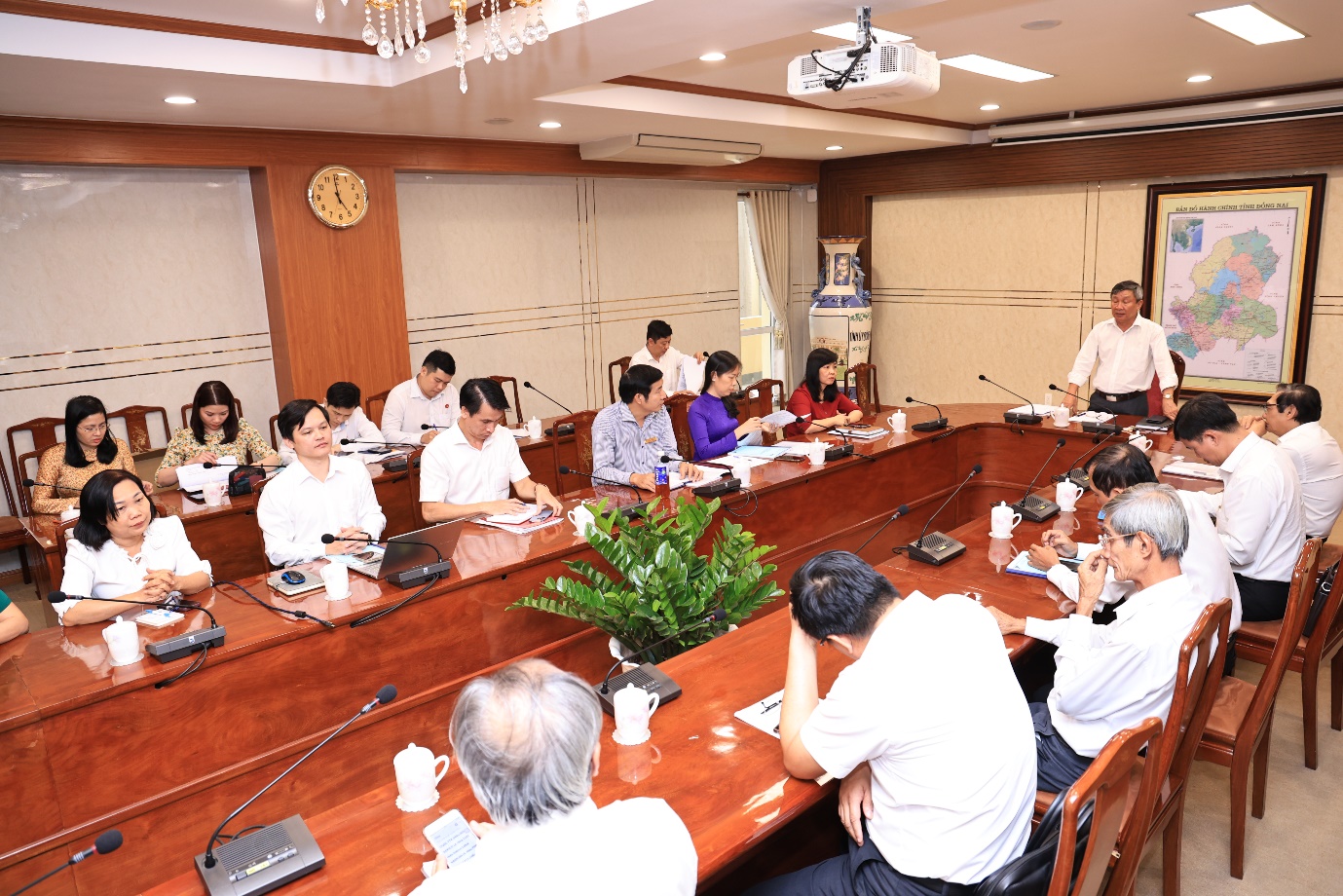 Tại buổi họp, đồng chí Lê Thị Cát Hoa, Hiệu trưởng Trường Chính trị tỉnh trình bày báo cáo tự đánh giá về kết quả thực hiện các tiêu chí chuẩn mức 1 của Trường Chính trị tỉnh Đồng Nai theo Quy định số 11-QĐ/TW, ngày 19/5/2021 của Ban Bí thư về Trường Chính trị chuẩn, đồng thời, báo cáo làm rõ một số nội dung trong quá trình thực hiện của Trường.
