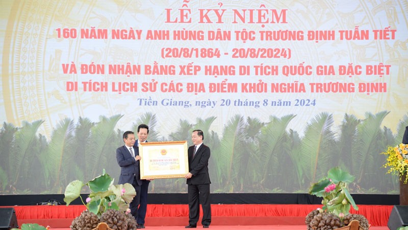 Ngày 20/8/2024, tỉnh Tiền Giang đã long trọng tổ chức Lễ kỷ niệm 160 năm Ngày Anh hùng dân tộc Trương Định tuẫn tiết (20/8/1864-20/8/2024) và đón nhận Bằng xếp hạng Di tích quốc gia đặc biệt Di tích lịch sử các địa điểm khởi nghĩa Trương Định.
