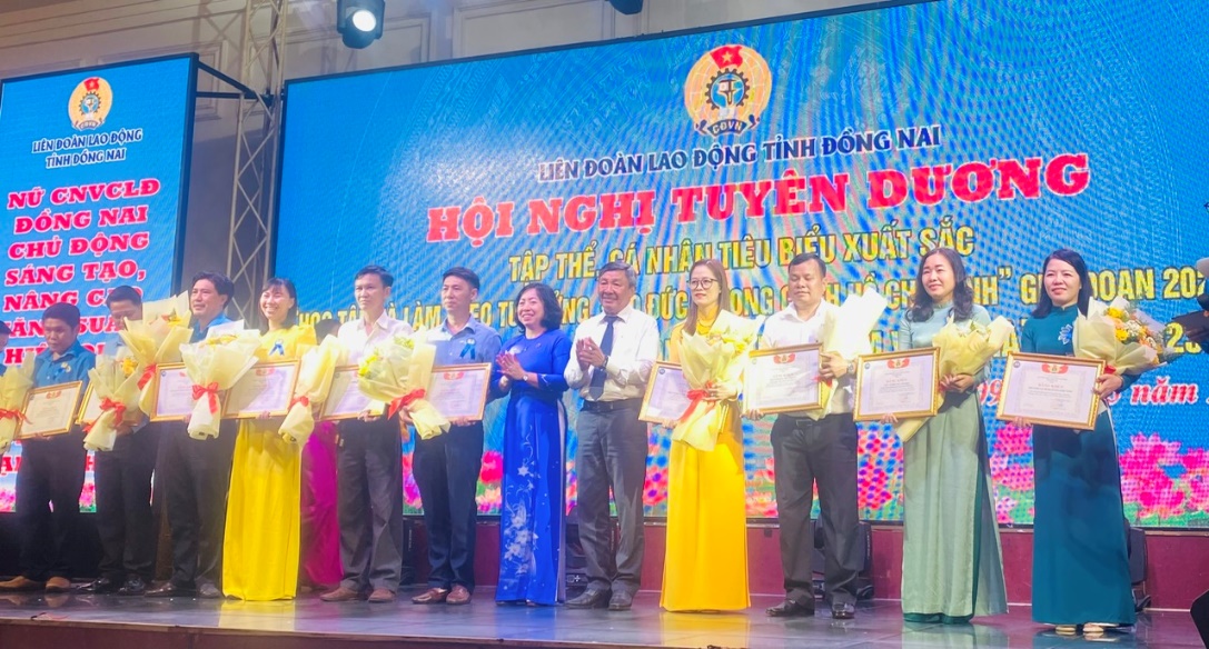 03 năm qua, đã có trên 2.700 lượt công đoàn cơ sở hưởng ứng thi đua, thực hiện trên 500 đề tài, 8.762 sáng kiến cải tiến kỹ thuật, 31.138 ý tưởng sản xuất từ người lao động, làm lợi 360 tỷ đồng. LĐLĐ tỉnh Đồng Nai được Chủ tịch nước tặng thưởng Huân chương độc lập hạng nhì, Tổng LĐLĐ Việt Nam tặng Cờ thi đua toàn diện cho 11 tập thể, Bằng khen cho 29 tập thể và 77 cá nhân. UBND tỉnh Đồng Nai tặng Bằng khen cho 17 tập thể và 36 cá nhân; Ban Chấp hành LĐLĐ tỉnh tỉnh tặng cờ thi đua toàn diện cho 55 tập thể, tặng Bằng khen cho 442 tập thể và 633 cá nhân; Công đoàn cấp trên trực tiếp cơ sở và công đoàn cơ sở đã tặng giấy khen cho trên 3.600 tập thể, cá nhân có thành tích xuất sắc trong các phong trào thi đua.