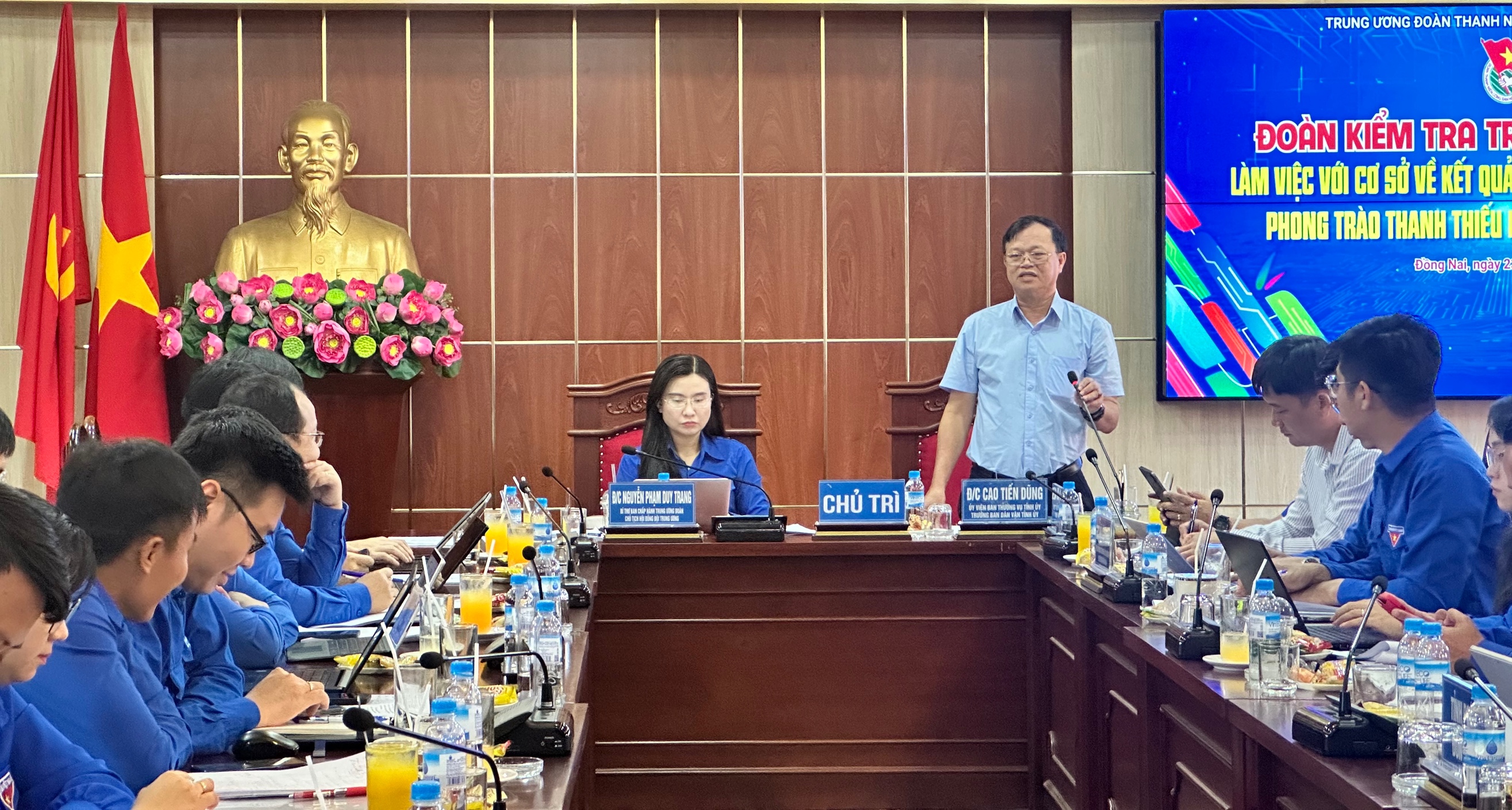 Sáng ngày 24/6/2024, tại Phòng họp Thành ủy Long Khánh, Trung ương Đoàn đã tổ chức kiểm tra định kỳ công tác Đoàn và phong trào thanh thiếu nhi 6 tháng đầu năm 2024 đối với Tỉnh đoàn Đồng Nai. Chị Nguyễn Phạm Duy Trang - Bí thư Trung ương Đoàn, Chủ tịch Hội đồng Đội Trung ương chủ trì Hội nghị. Tham dự Hội nghị có đồng chí Cao Tiến Dũng - UVBTV, Trưởng Ban Dân vận Tỉnh ủy, các đồng chí Ban Thường vụ Tỉnh đoàn, lãnh đạo các ban chuyên môn, văn phòng Tỉnh đoàn, Ban Giám đốc Nhà Thiếu nhi tỉnh.
