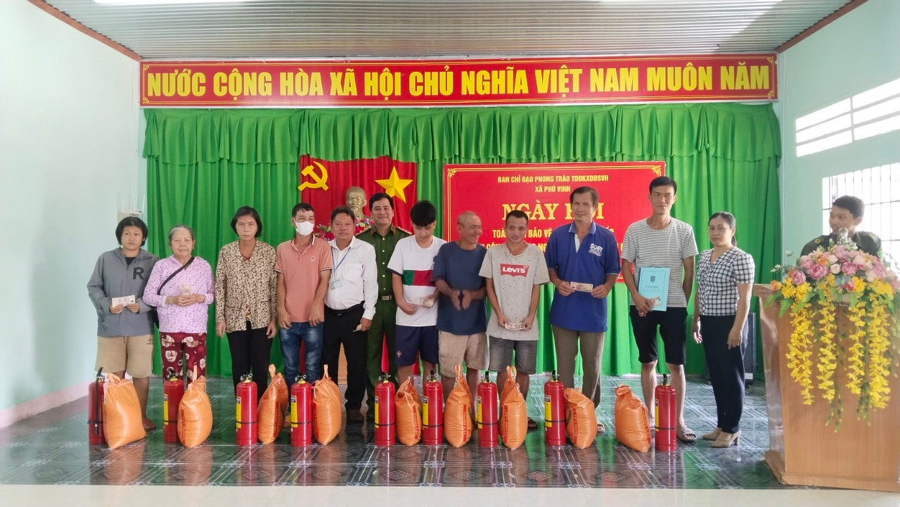 Năm qua, phong trào “Toàn dân bảo vệ ANTQ” trên địa bàn xã Phú Vinh đạt được những kết quả tích cực, góp phần đảm bảo an ninh trật tự, phục vụ phát triển kinh tế xã hội ở địa phương. Công tác tuyên truyền vận động Nhân dân tham gia phòng, chống tội phạm, tệ nạn xã hội và các hành vi vi phạm pháp luật được đẩy mạnh. Duy trì tốt các tổ chức quần chúng tham gia bảo vệ an ninh trật tự và tổ liên gia an toàn về phòng cháy chữa cháy. Lực lượng Công an và Quân sự xã luôn phối hợp chặt chẽ trong công tác tuần tra kiểm soát địa bàn, đảm bảo ANTT sau 23 giờ trên địa bàn xã . Nằm trong chương trình hội nghị, Ủy ban Mặt trận Tổ quốc xã đã chủ trì và phối hợp với Công an xã tổ chức Hội nghị "Công an xã lắng nghe ý kiến Nhân dân" năm 2024, nhằm tiếp thu những ý kiến, kiến nghị của các cơ quan, tổ chức và Nhân dân trên địa bàn để khắc phục những tồn tại, hạn chế trong các mặt công tác, góp phần xây dựng Lực lượng Công an ngày tinh nhuệ, vững mạnh, hoàn thành xuất sắc nhiệm vụ được giao. Trong dịp này công an xã và Hội LHPN xã vận động mạnh thường quân trên địa bàn được 24 phần quà gồm: bình chữa cháy, gạo và 200.000đ, cho các hộ dân có hoàn cảnh khó khăn trên địa bàn xã. Đồng chí Trần Minh Huy phát quà cho các hộ khó khăn trên địa bàn