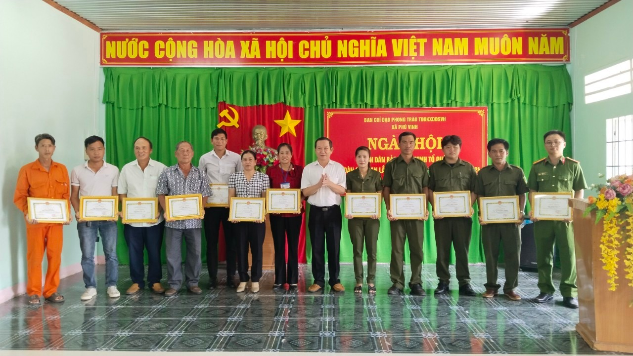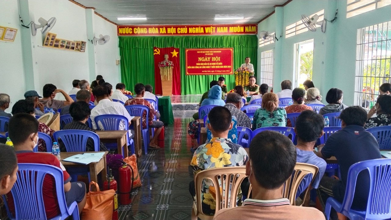 Ban chỉ đạo phong trào “TD.ĐKXDĐSVH” Xã Phú Vinh tổ chức ngày hội toàn dân bảo vệ an ninh tổ quốc năm 2024. Thiết thực kỷ niệm 79 năm ngày truyền thống lực lượng Công an nhân dân Việt Nam (19/8/1945 - 19/8/2024) và 19 năm Ngày hội toàn dân bảo vệ an ninh Tổ quốc (19/8/2005 - 19/8/2024) Chiều ngày 19/8/2024, tại nhà văn hóa ấp 2, BCĐ phong trào “TD.ĐKXDĐSVH” xã Phú Vinh long trọng tổ chức “Ngày hội Toàn dân bảo vệ an ninh Tổ quốc” và “Hội nghị công an xã lắng nghe ý kiến của Nhân dân” năm 2024. Đến dự Ngày hội có đồng chí Tô Xuân Minh – bí thư Đảng ủy – Chủ tịch UBND xã; đồng chí Trần Minh Huy Phó chủ tịch HĐND xã; đồng chí Lê Thị Huệ – Chủ tịch UB.MTTQ xã, các đồng chí trưởng phó các ban ngành đoàn thể xã, các đồng chí bí thư chi bộ, trưởng ấp, tập thể công an xã và đông đủ bà con Nhân dân xã Phú Vinh đến tham dự. Đồng chí Tô Xuân Minh trưởng ban chỉ đạo phát biểu khai mạc