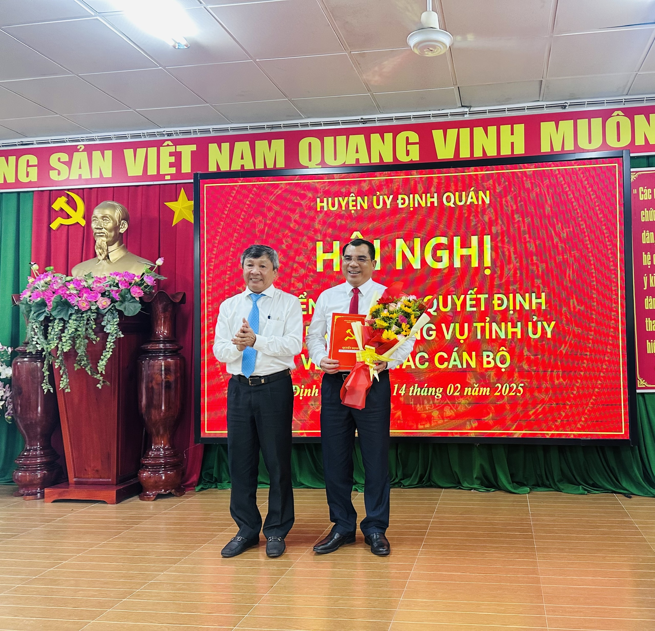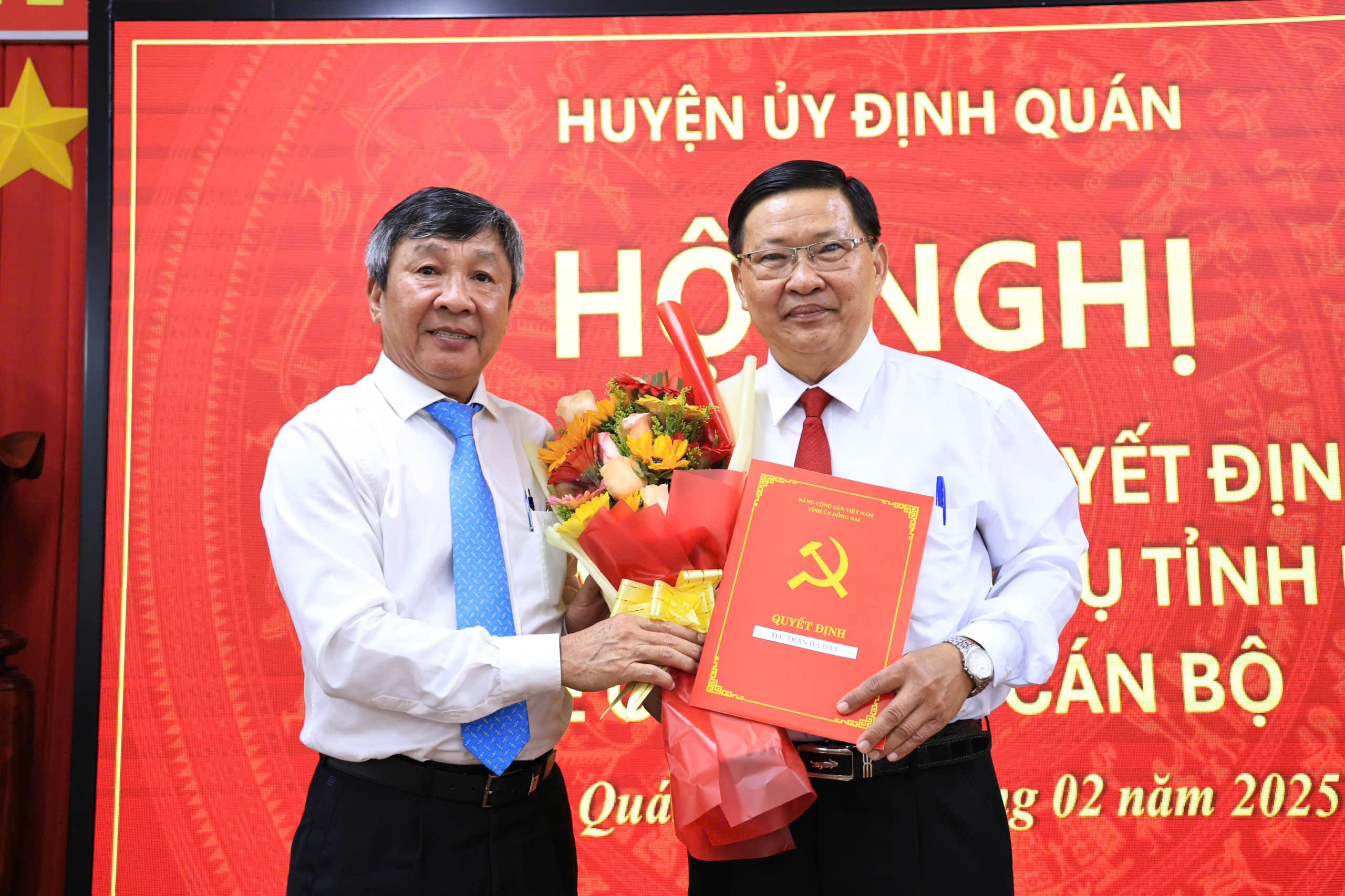 Tại hội nghị, Trưởng ban Tổ chức Tỉnh ủy Đào Văn Phước đã công bố quyết định nghỉ hưu theo chế độ của đồng chí Trần Bá Đạt, Bí thư Huyện ủy; Quyết định điều động, chỉ định đồng chí Nguyễn Cao Cường, Bí thư Đảng ủy Khối Doanh nghiệp tỉnh tham gia Ban Chấp hành, Ban Thường vụ Huyện ủy Định Quán và giữ chức Bí thư Huyện ủy nhiệm kỳ 2020-2025.