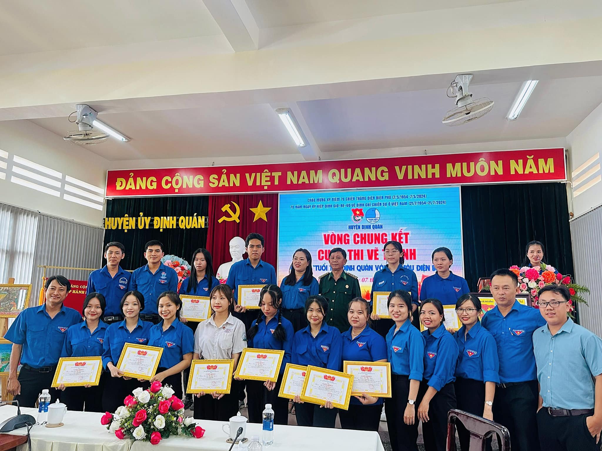 Trong khuôn khổ chương trình, Ban Thường vụ Huyện đoàn đã tổ chức vòng chung kết cuộc thi vẽ tranh với chủ đề “Tuổi trẻ Định Quán với sắc màu Điện Biên”. Qua xem xét, đánh giá chọn lọc với tinh thần khách quan, công tâm. Ban Tổ chức đã chọn 10 tác phẩm tiêu biểu để tham gia vòng chung kết. Giải nhất cuộc thi thuộc về anh Nguyễn Hiếu - Đoàn trường THPT Phú Ngọc.