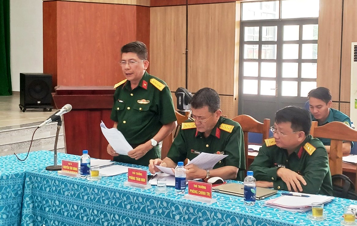 Đại tá Nguyễn Văn Dũng - Đảng ủy viên Đảng ủy Quân sự tỉnh, Phó Chỉ huy trưởng Bộ Chỉ huy Quân sự tỉnh phát biểu tại hội nghị