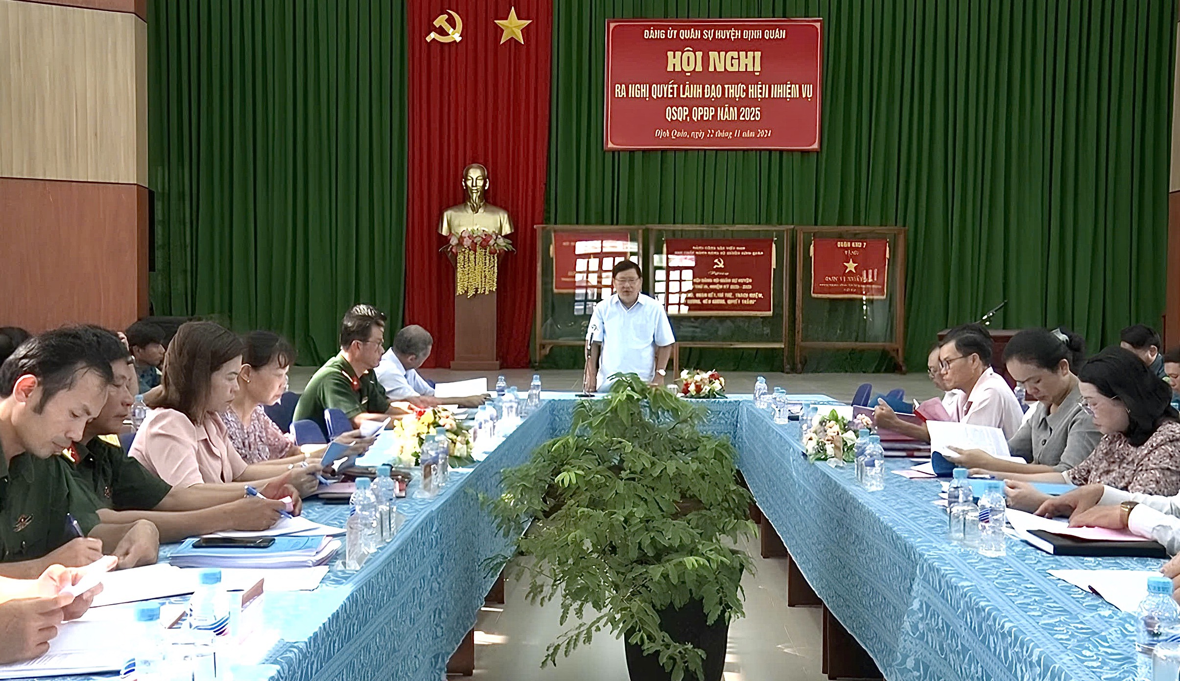 Ngày 22/11, Đảng ủy Quân sự huyện Định Quán tổ chức phiên họp cuối năm 2024 và ra Nghị quyết lãnh đạo thực hiện nhiệm vụ năm 2025. Đồng chí Trần Bá Đạt – TUV, Bí thư Huyện ủy, Bí thư Đảng ủy Quân sự huyện chủ trì hội nghị.