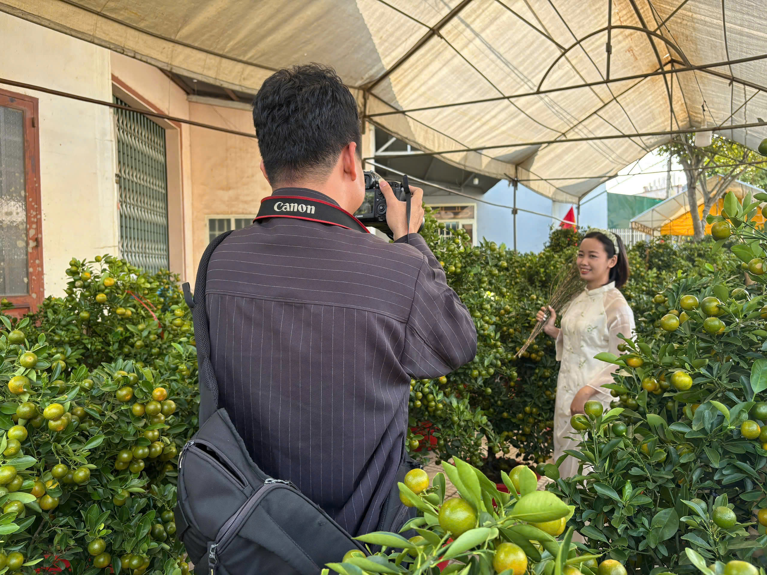 Khách hàng thích thú chụp ảnh tết tại chợ hoa
