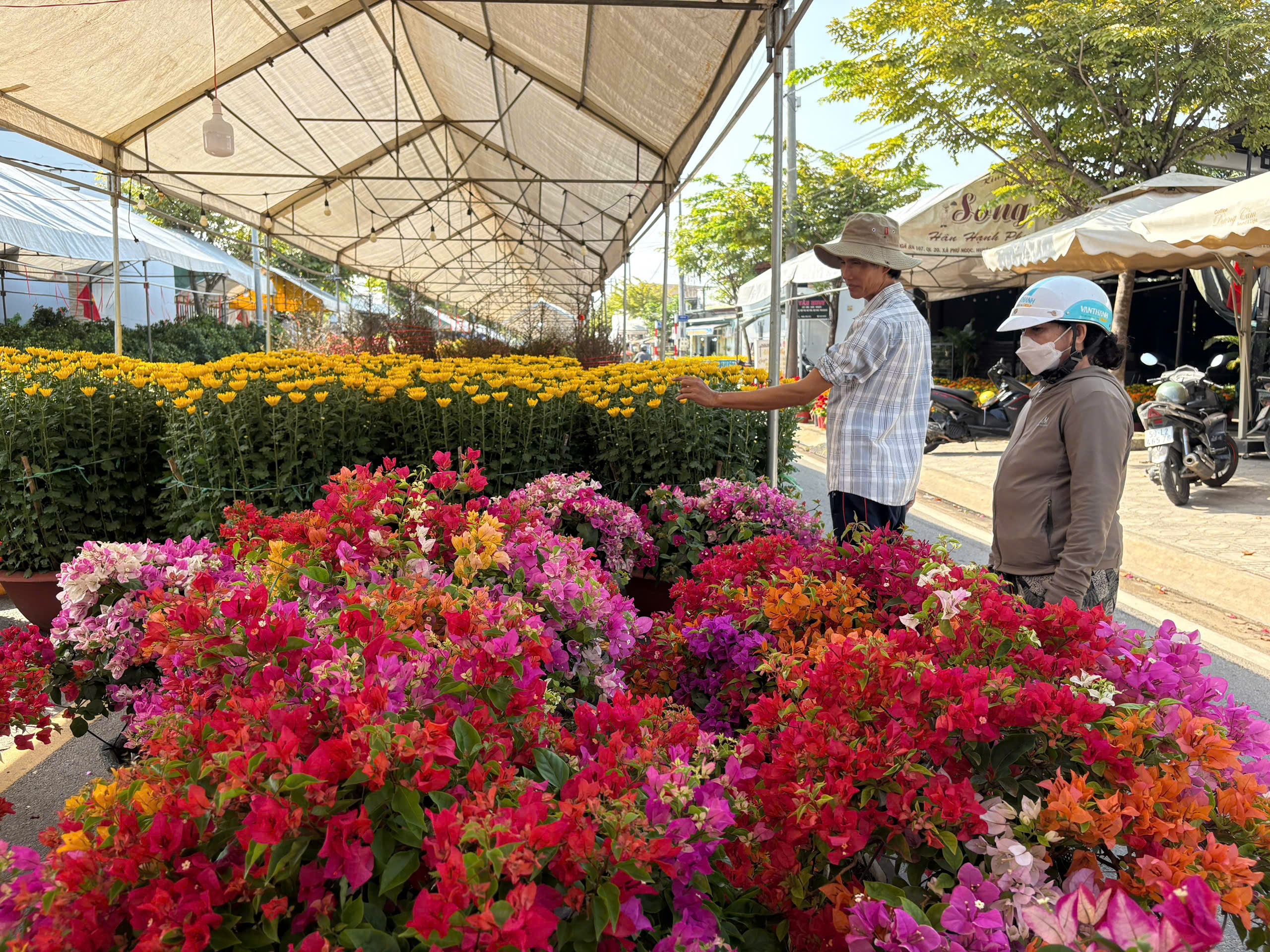 Trong những ngày sát tết Ông Táo các nhà vườn, hộ kinh doanh hoa tươi, cây cảnh và trái cây tại Định Quán đang tất bật chuẩn bị các gian hàng tại Chợ hoa- trái cây xuân Ất Tỵ. Trên 100 gian hàng, trãi dài trên đường Trần Nhân Tông, khu phố Hiệp Tâm 2, với nhiều loại hoa tươi, cây cảnh và trái cây được bày bán, tạo nên không khí rộn ràng, tràn ngập sắc xuân.