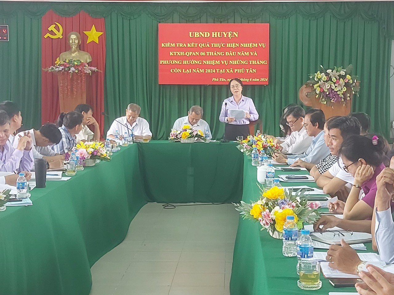 Ngày 12/6/2024, Đoàn công tác số 1 của UBND huyện do đồng chí Trần Nam Biên, Chủ tịch UBND huyện làm Trưởng đoàn, đã làm việc với xã Phú Tân để kiểm tra tình hình triển khai thực hiện các nhiệm vụ phát triển kinh tế, xã hội, quốc phòng, an ninh 6 tháng đầu năm 2024 và phương hướng nhiệm vụ 6 tháng cuối năm 2024.
