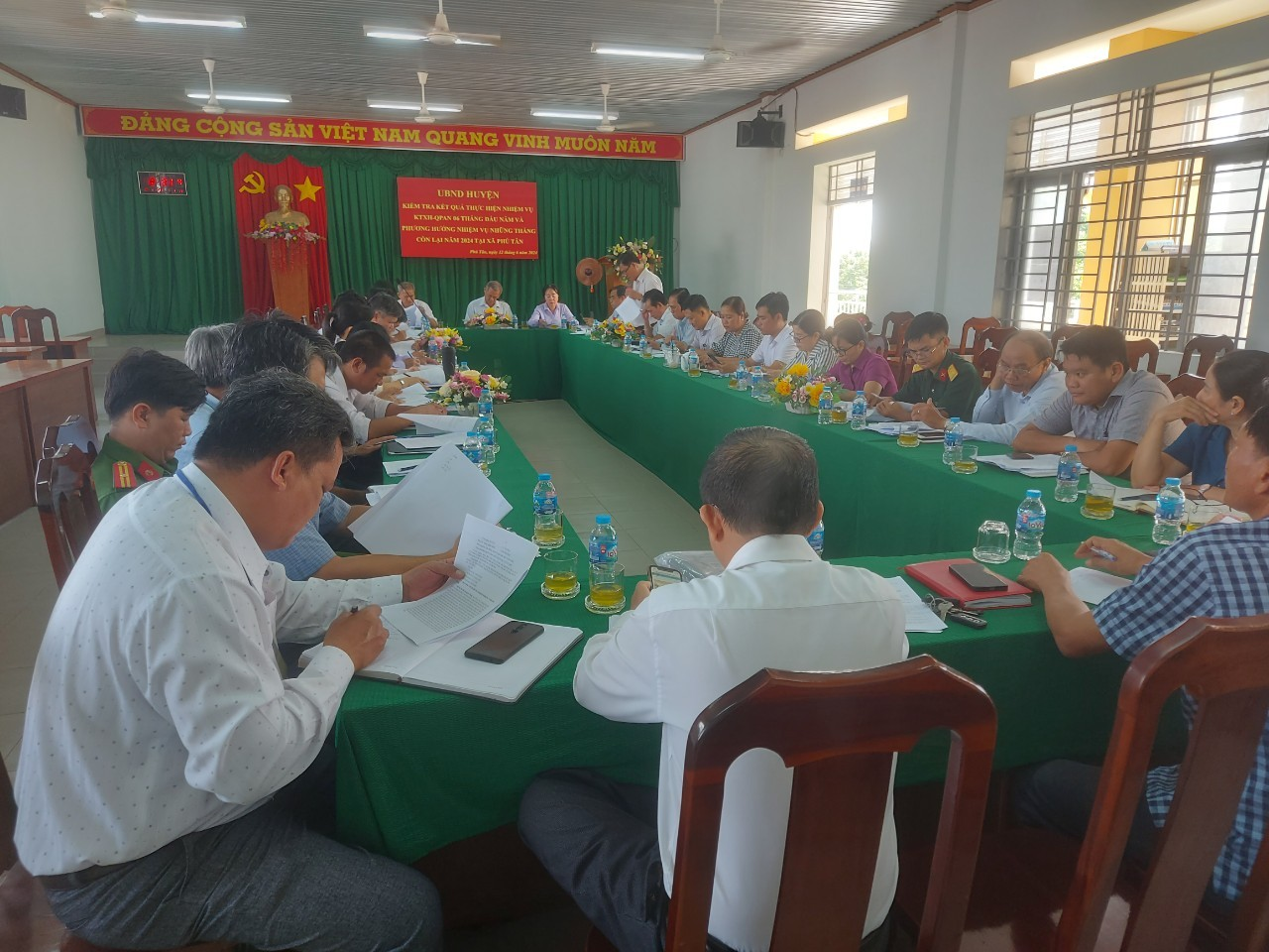 Trên cơ sở báo cáo của địa phương và nắm bắt tình hình thực tế, Đoàn công tác UBND của huyện đã nêu rõ những kết quả xã Phú Tân đạt được trong từng lĩnh vực, trong đó nhấn mạnh những hạn chế, thiếu sót của địa phương, từ đó gợi ý hướng khắc phục trong thời gian tới.