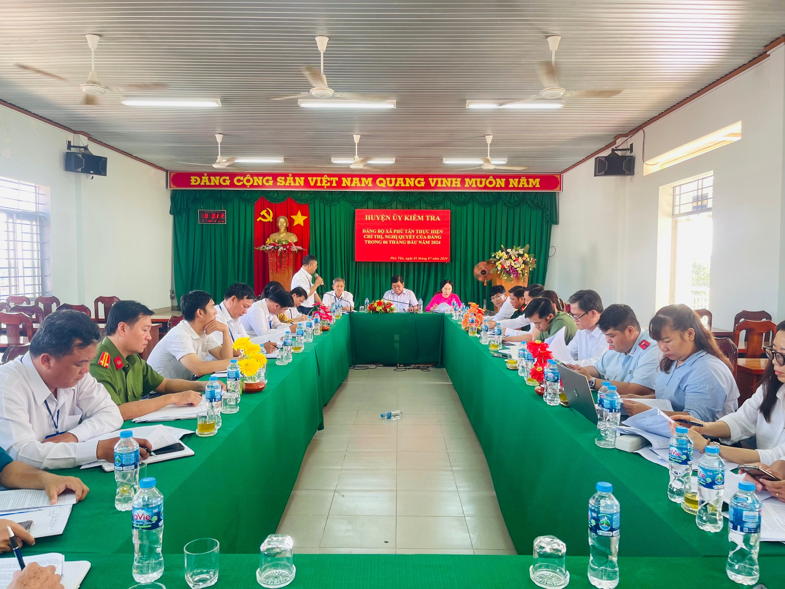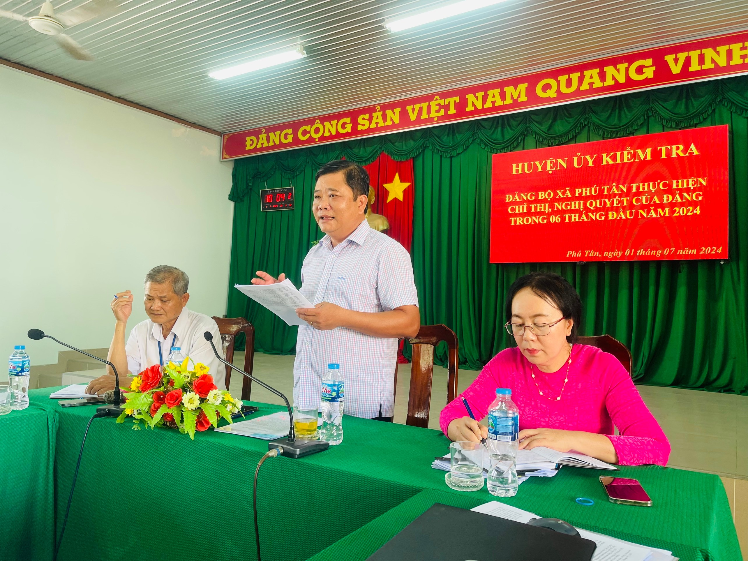 Sáng ngày 01/7/2024, Đoàn kiểm tra số 01 của Ban Thường vụ Huyện ủy do đồng chí Trần Hữu Hạnh – Phó Bí thư Thường trực Huyện ủy, Chủ tịch HĐND huyện làm Trưởng đoàn đã có buổi làm việc với làm việc với Đảng ủy xã Phú Tân, nhằm đánh giá kết quả thực hiện Nghị quyết Đại hội Đảng bộ huyện khóa XIII, Nghị quyết Đại hội Đảng bộ xã trong 6 tháng đầu năm 2024; những khó khăn, vướng mắc và phương hướng, nhiệm vụ trong thời gian tới.