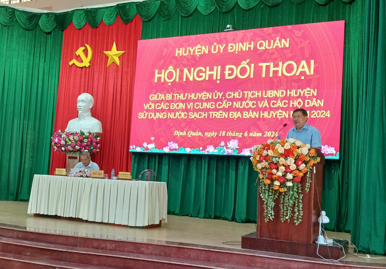 Sáng ngày 17/6/2024, đồng chí Trần Bá Đạt - Tỉnh ủy viên, Bí thư Huyện ủy; đồng chí Trần Nam Biên - Phó bí thư Huyện ủy, Chủ tịch UBND huyện đã tổ chức đối thoại trực tiếp với các đơn vị cung cấp nước và các hộ dân sử dụng nước sạch trên địa bàn huyện. Cùng dự có đại diện lãnh đạo các Ban Đảng, Văn phòng Huyện ủy, các phòng, ban chuyên môn trực thuộc huyện, Mặt trận Tổ quốc và các đoàn thể huyện, Thường trực Đảng ủy, Ủy ban nhân dân, Mặt trận Tổ quốc các xã, thị trấn, các đơn vị cung cấp nước sạch và người dân trên địa bàn huyện.