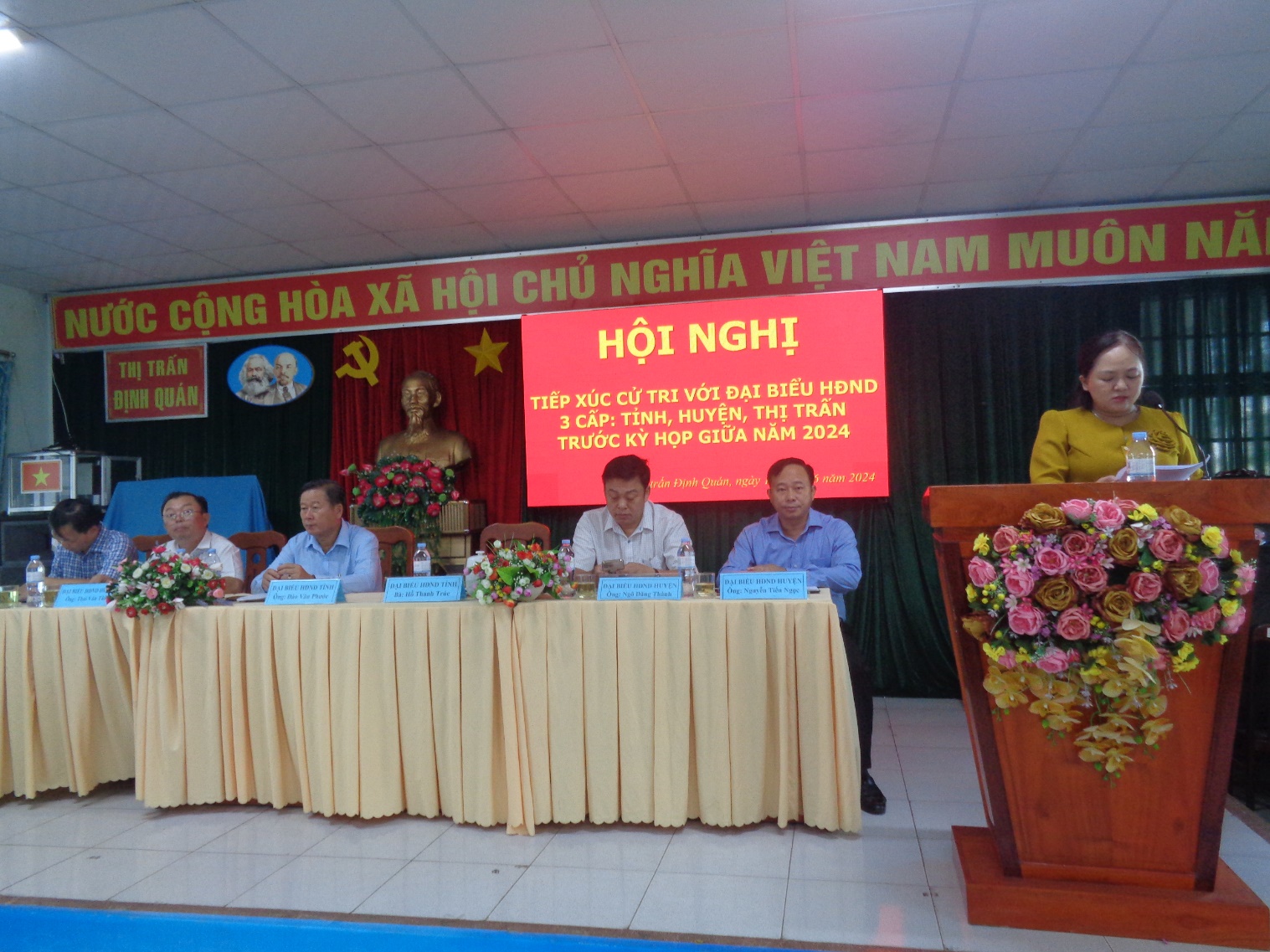 Đến dự buổi tiếp xúc Đại biểu HĐND Tỉnh có Đại biểu Đào Văn Phước - Thường vụ Tỉnh ủy, Trưởng ban tổ chức Tỉnh ủy; Đại biểu: Hồ Thanh Trúc, Thường vụ Huyện ủy, Bí thư Đảng ủy Thị trấn Định Quán. Đại biểu HĐND Huyện có đại biểu Thái Văn Tân – Bí thư Đảng ủy xã Phú Hòa, Tổ trưởng tổ đại biểu số 3 HĐND huyện, Đại biểu Nguyễn Tiến Ngọc –Thường vụ huyện ủy, PCT HĐND Huyện; Đại biểu Ngô Hoàng Hải – Thường vụ Huyện ủy, Phó chủ tịch UBND huyện; Đại biểu Ông: Ngô Đăng Thành – Huyện ủy viên, Trưởng phòng GD&ĐT Huyện. Cùng dự có đại biểu HĐND thị trấn có các Tổ Đại biểu HĐND khu phố Hiệp Đồng; Tổ Đại biểu HĐND khu phố Hiệp Tâm 2 ; Tổ Đại biểu HĐND khu phố Hiệp Lợi. lãnh đạo địa phương có Đ/c Nguyễn Văn Đạt – Phó bi thư Đảng ủy, Chủ tịch HĐND thị trấn; Đ/c Ngô Kim Nguyệt – Chủ tịch UBND thị trấn; Tham dự buổi tiếp xúc có 95 cử tri thuộc địa bàn 03 đơn vị Thị trấn Định Quán, Xã Ngọc Định, Xã Phú Lợi. Chủ trì hội nghị: Ông Phạm Văn Sơn Chủ tịch UBMT TQ thị trấn.