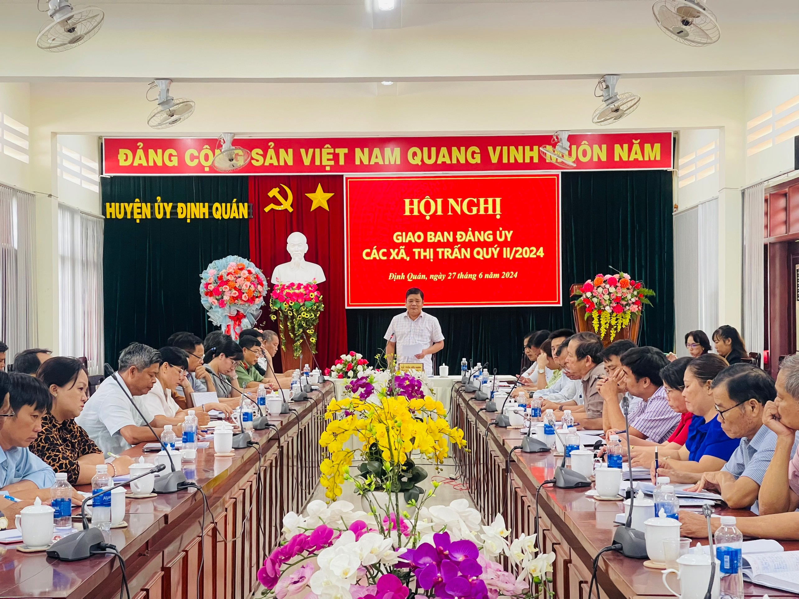 Trong quý II/2024, Đảng ủy các xã, thị trấn tập trung lãnh đạo, chỉ đạo thực hiện tốt các nhiệm vụ theo chương trình công tác của từng đơn vị đề ra, góp phần thực hiện tốt các chỉ tiêu Nghị quyết của Ban Chấp hành Đảng bộ huyện năm 2024. Trong đó một số kết quả nổi bật thực hiện đạt hiệu quả như: Sản xuất nông nghiệp đảm bảo đúng kế hoạch, tiến độ đề ra, các loại cây trồng sinh trưởng phát triển tốt. Lĩnh vực văn hóa - xã hội được quan tâm, triển khai thực hiện có hiệu quả. Tình hình an ninh chính trị, trật tự an toàn xã hội cơ bản được giữ vững. Công tác cải cách hành chính được tập trung đẩy mạnh, công tác tiếp công dân được duy trì thường xuyên, giải quyết kịp thời các ý kiến, kiến nghị của công dân. Công tác dân vận trên địa bàn huyện được đổi mới theo hướng sâu sát với cơ sở, gần gũi với nhân dân. Công tác phát triển đảng được quan tâm thực hiện. Đến nay có 4/13 xã đạt chuẩn nông thôn mới kiểu mẫu (Phú Túc, Phú Hòa, Phú Vinh và Phú Tân) và thị trấn Định Quán đạt chuẩn đô thị văn minh.