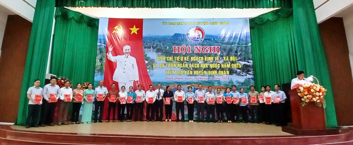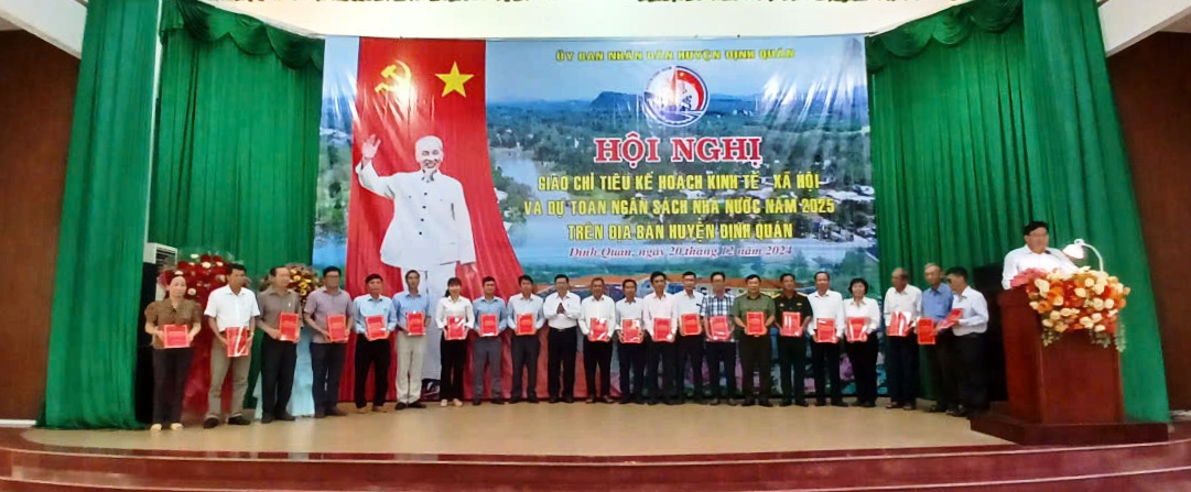 Chiều 20/12/2024, UBND huyện Định Quán tổ chức hội nghị giao chỉ tiêu kế hoạch kinh tế - xã hội và dự toán ngân sách nhà nước năm 2025. Tham dự hội nghị có đồng chí Trần Bá Đạt – Tỉnh ủy viên, Bí thư Huyện ủy Định Quán; đồng chí Trần Nam Biên – Phó bí thư Huyện ủy, Chủ tịch UBND huyện.