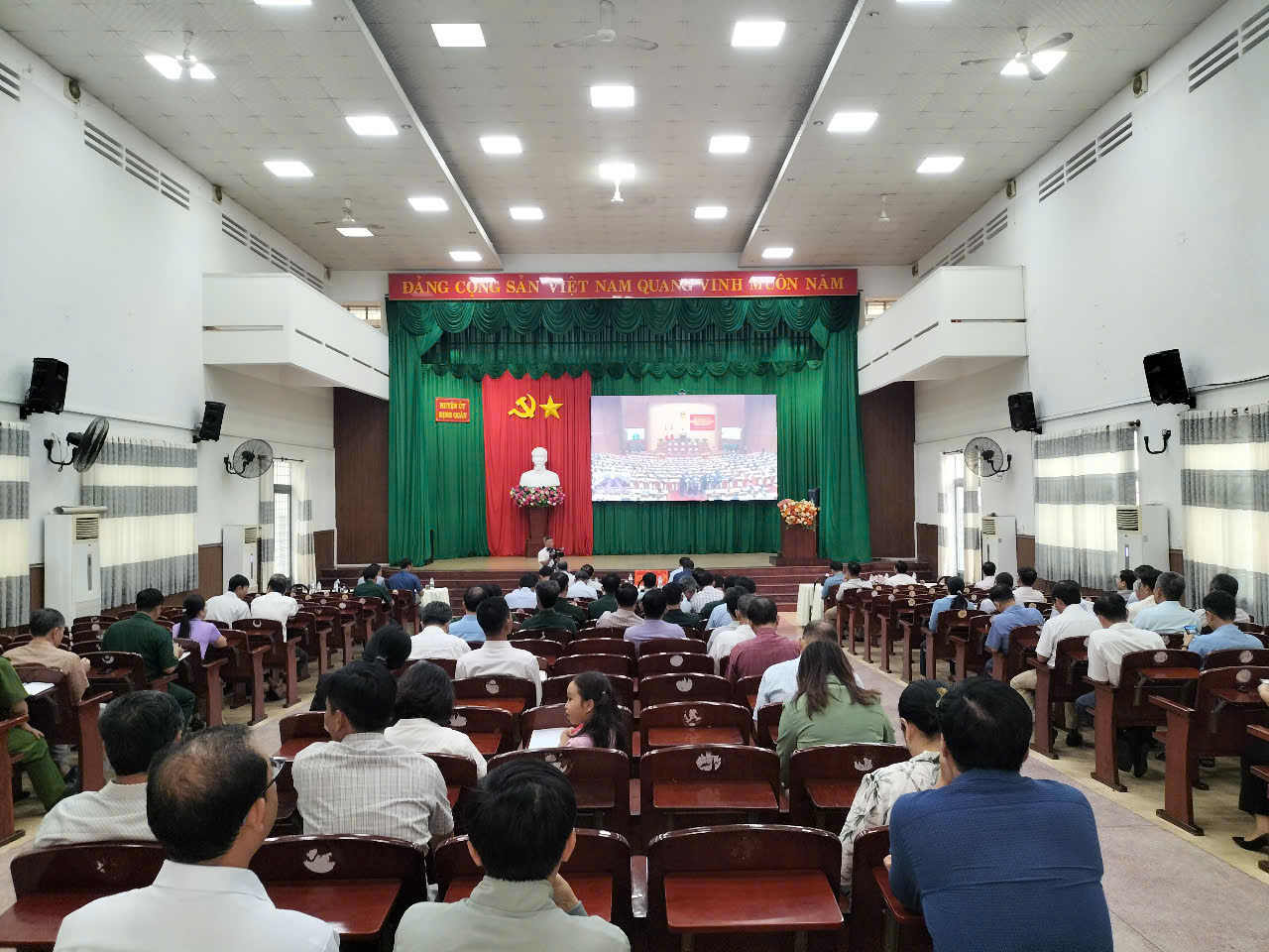 Sáng ngày 1/12/2024, Bộ Chính trị, Ban Bí thư tổ chức Hội nghị toàn quốc quán triệt, triển khai tổng kết việc thực hiện Nghị quyết số 18-NQ/TW của Ban Chấp hành Trung ương Đảng khóa XII; tình hình kinh tế - xã hội năm 2024, giải pháp tăng tốc phát triển kinh tế - xã hội năm 2025 và tháo gỡ những điểm nghẽn, nút thắt về thể chế. Hội nghị được kết nối từ điểm cầu Trung ương đến các cấp ủy cơ sở. Dự và chủ trì tại điểm cầu huyện Định Quán có đồng chí Trần Bá Đạt – TUV, Bí thư Huyện ủy, đồng chí Trần Hữu Hạnh - Phó Bí thư Thường trực Huyện ủy, Chủ tịch HĐND huyện, đồng chí Trần Nam Biên - Phó Bí thư Huyện ủy, Chủ tịch UBND huyện, cùng dự có các đồng chí Ủy viên Ban Thường vụ Huyện ủy; Ủy viên Ban Chấp hành Đảng bộ huyện; Lãnh đạo các phòng, ban, ngành, đoàn thể huyện, các đồng chí Ủy viên UBKT Huyện ủy, các đồng chí báo cáo viên Huyện ủy, đảng viên thuộc các Ban Đảng, Văn phòng Huyện ủy, Trung tâm Chính trị huyện. Hội nghị được kết nối trực tuyến từ điểm cầu Huyện ủy đến điểm cầu 14/14 xã, thị trấn trong toàn huyện, với 884 đại biểu tham dự.