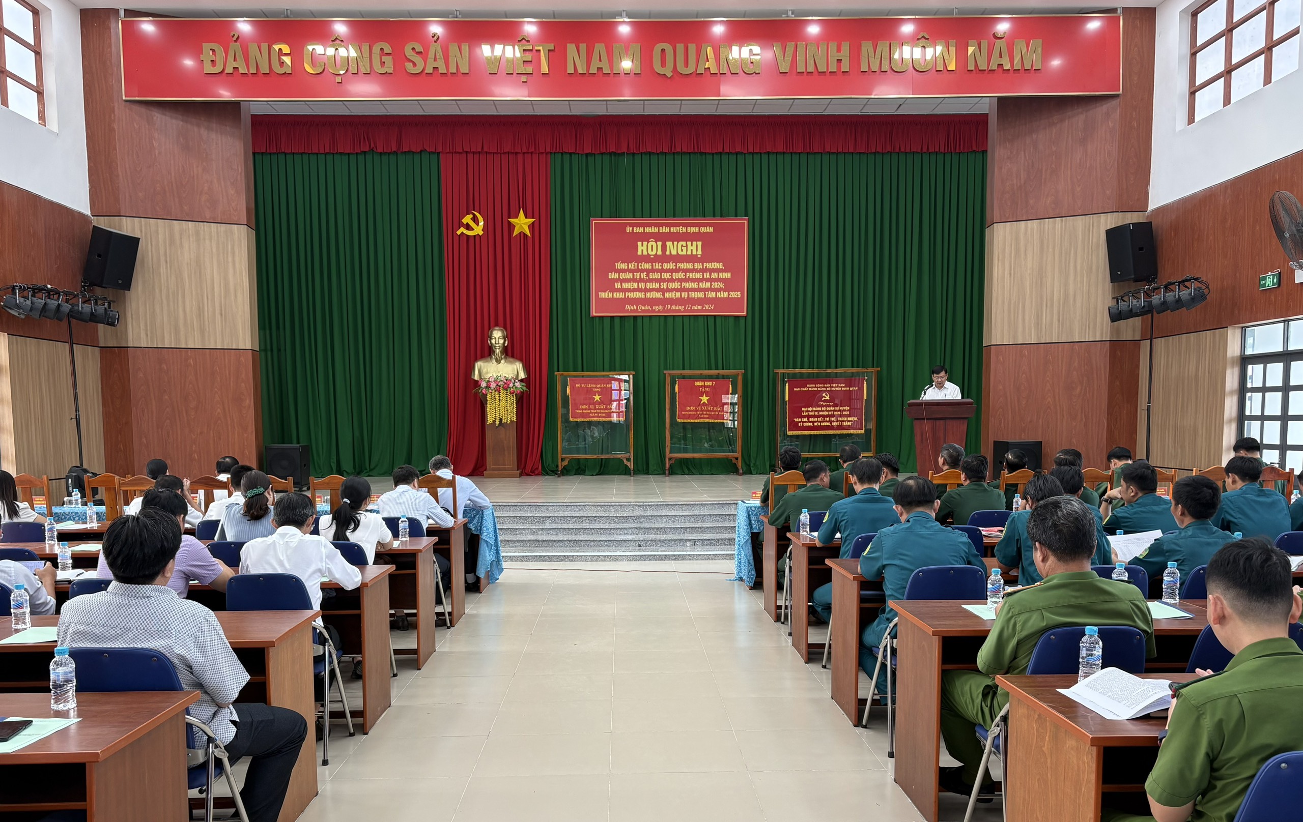 Năm 2024, công quốc phòng địa phương của huyện Định Quán đã được triển khai đồng bộ, chặt chẽ và hoàn thành tốt các nhiệm vụ được giao. Nhận thức sâu sắc về tầm quan trọng của công tác quốc phòng, cấp uỷ, chính quyền địa phương từ huyện đến cơ sở quán triệt nghiêm túc hệ thống văn bản của Đảng, Nhà nước, Bộ Quốc phòng, Quân khu, Bộ CHQS tỉnh về công tác quốc phòng địa phương, giáo dục quốc phòng và an ninh, đồng thời triển khai thực hiện công tác QPĐP, GDQP&AN đạt kết quả tốt, góp phần giữ vững an ninh chính trị - trật tự an toàn xã hội, tạo môi trường ổn định cho phát triển kinh tế - xã hội của địa phương. Bên cạnh đó, duy trì nghiêm công tác sẵn sàng chiến đấu giữ vững an ninh chính trị, trật tự an toàn xã hội; hoàn thành và hoàn thành chỉ tiêu công tác bồi dưỡng kiến thức QPAN; hoàn thành 100% chỉ tiêu công tác tuyển quân, có chất lượng tốt; chỉ đạo, tổ chức thành công diễn tập khu vực phòng thủ cấp xã; thực hiện tốt chính sách hậu phương quân đội.