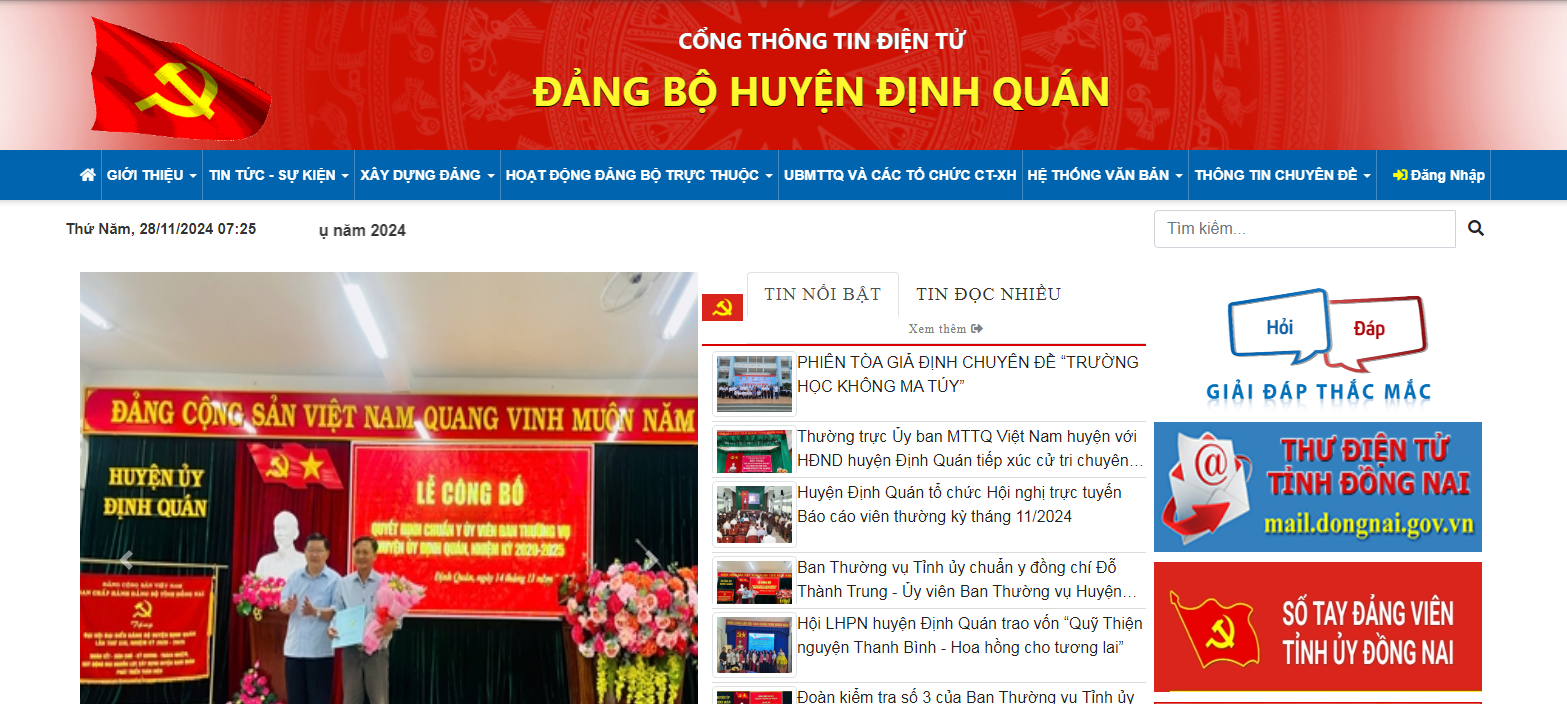Cổng thông tin điện tử Đảng bộ huyện Định Quán