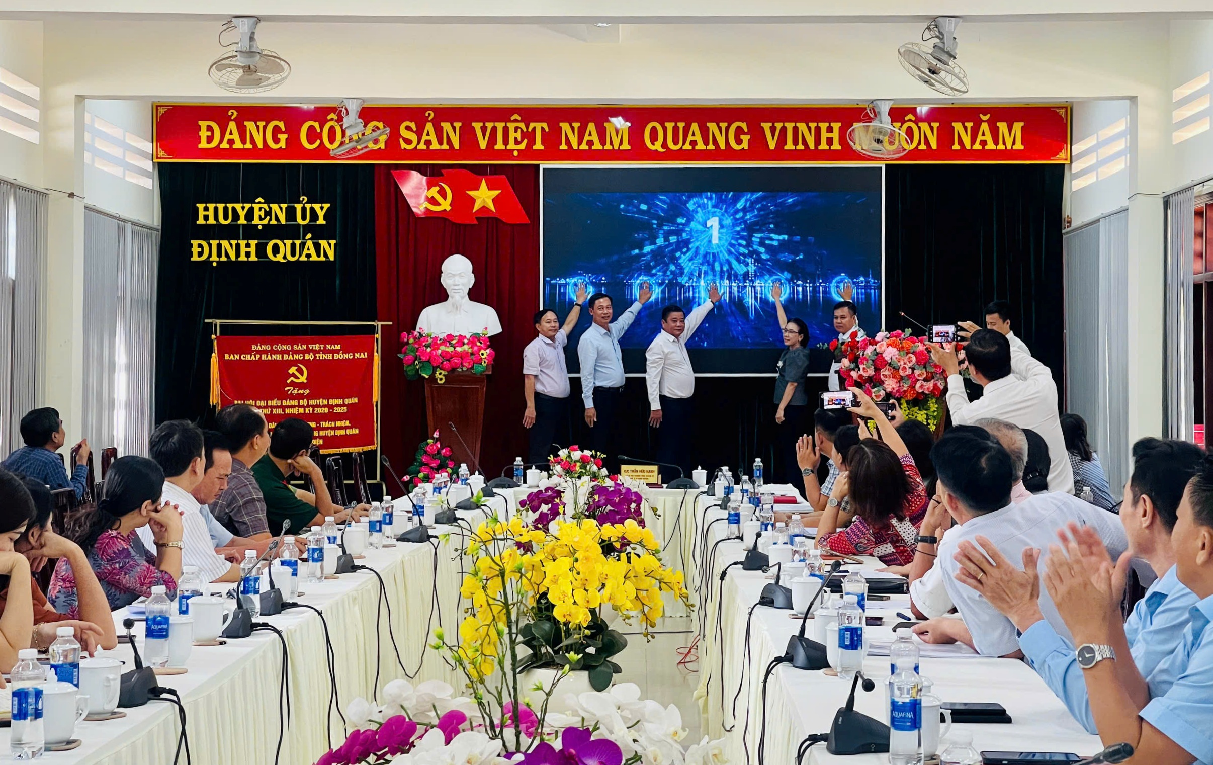 Các đồng chí lãnh đạo huyện Định Quán thực hiện nghi thức công bố, công khai Cổng thông tin điện tử Đảng bộ huyện