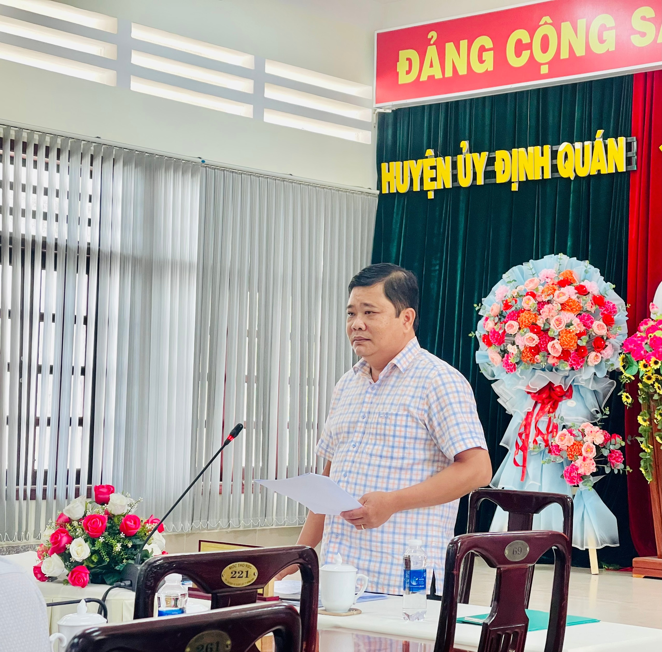 Huyện Định Quán hiện có 06 trường Trung học phổ thông, 01 trung tâm giáo dục thường xuyên và giáo dục nghề nghiệp, 100% đơn vị đều có tổ chức đảng (02 đảng bộ cơ sở, 05 chi bộ cơ sở với 237 đảng viên). Thực hiện Hướng dẫn số 03-HD/TU ngày 31/10/2023 của Ban Thường vụ Tỉnh ủy về kết nạp đảng viên là học sinh, sinh viên trên địa bàn tỉnh Đồng Nai, Ban Thường vụ Huyện ủy đã sao gửi Hướng dẫn và triển khai đến các Tổ chức cơ sở đảng trực thuộc, trong đó chú trọng đến các Tổ chức đảng tại các Trường THPT, Trung tâm giáo dục thường xuyên và giáo dục nghề nghiệp nơi có đông học sinh đang học tập, sinh hoạt.
