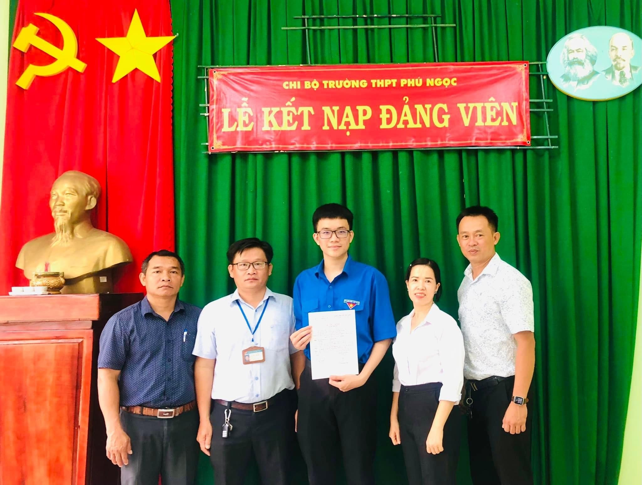 Vũ Nguyễn Tất Đạt, học sinh lớp 12A1 trường THPT Phú Ngọc tại Lễ kết nạp đảng viên
