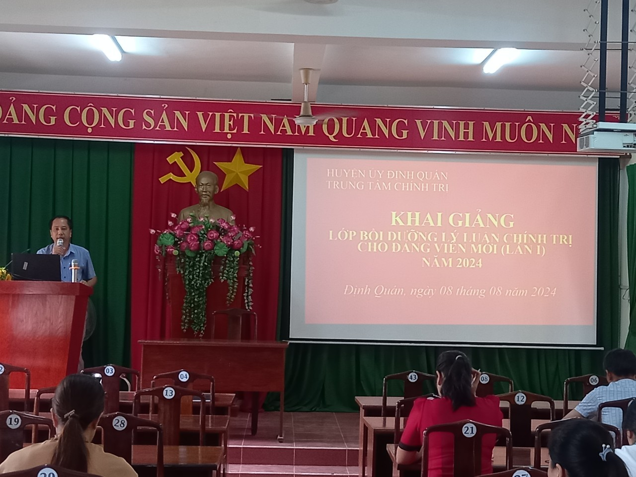 Phát biểu tại Lễ khai giảng, đồng chí Trần Tấn Hoàng –Phó Giám đốc Trung tâm Chính trị huyện đã nhấn mạnh tầm quan trọng của việc việc học tập, bồi dưỡng lý luận chính trị đối với đội ngũ đảng viên mới kết nạp; yêu cầu Ban tổ chức lớp học và các giảng viên duy trì nghiêm túc kỷ luật lớp học, đảm bảo quân số và chất lượng học tập các chuyên đề; các học viên cần tuân thủ nghiêm túc nội quy, yêu cầu của lớp học, nêu cao ý thức tự giác, tập trung để tiếp thu đầy đủ nội dung các chuyên đề và xây dựng kế hoạch phấn đấu, rèn luyện trong quá trình học tập.